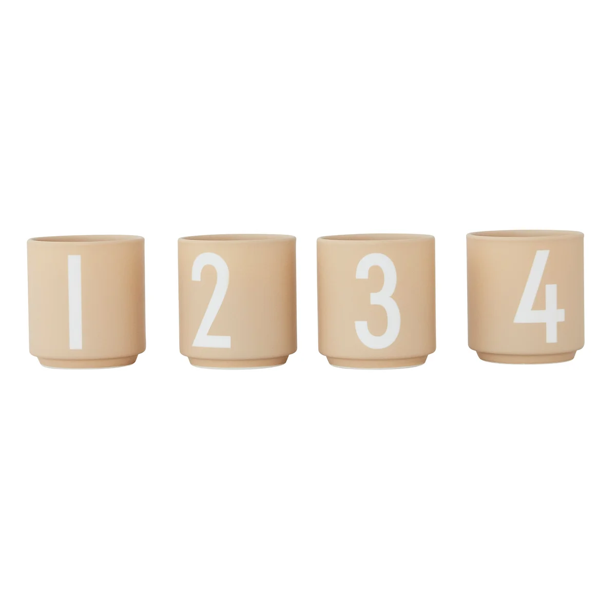 Die markanten Zahlen, die die Becher schmücken, wurden 1937 von dem dänischen Designer Arne Jacobsen entworfen. Ursprünglich für die interne Beschriftung des Aarhus Rathauses, zieren die Buchstaben, Zahlen und Zeichen nun vielfältige Heimtextilien, Geschirr und Büro-Utensilien von Design Letters. Modernes und spielerisches Design für Wortakrobaten, Grafik- und Design-Liebhaber.