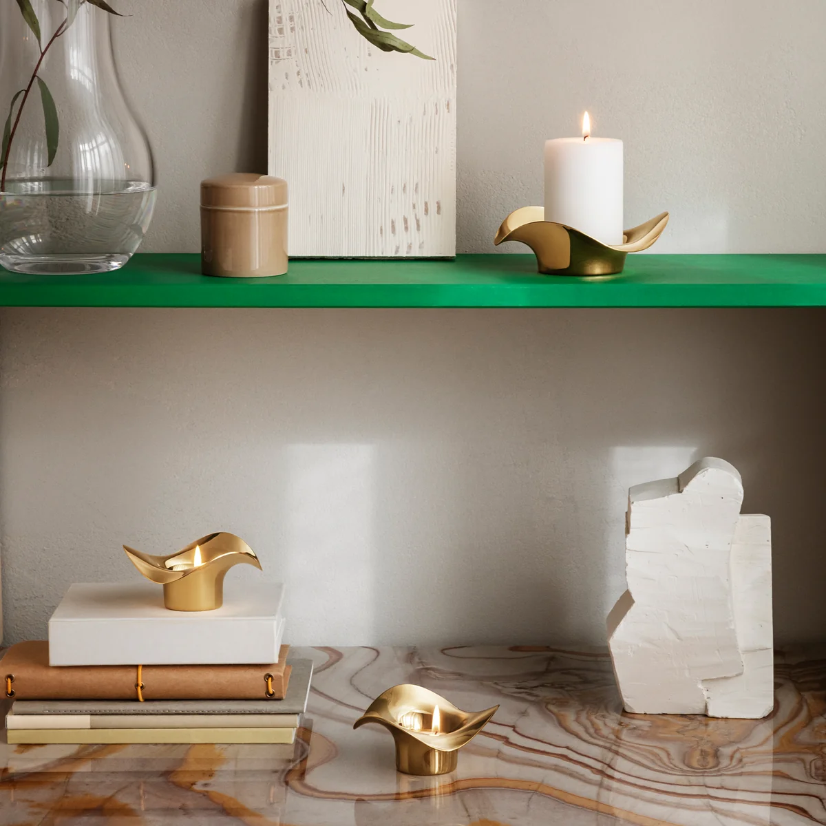 Die Teelichthalter können individuell am Tisch oder auf der Kommode im Wohnbereich angeordnet werden und verbinden harmonische Linien mit warmen Kerzenschein.