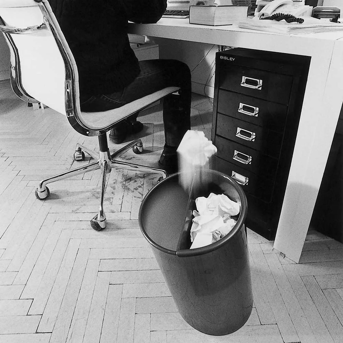 Der schiefe Papierkorb "In Attesa" ist einer der Design-Klassiker von Enzo Mari und ein überragender, zeitloser Gebrauchsgegenstand, der in keinem design-orientiertem Büro fehlen darf.