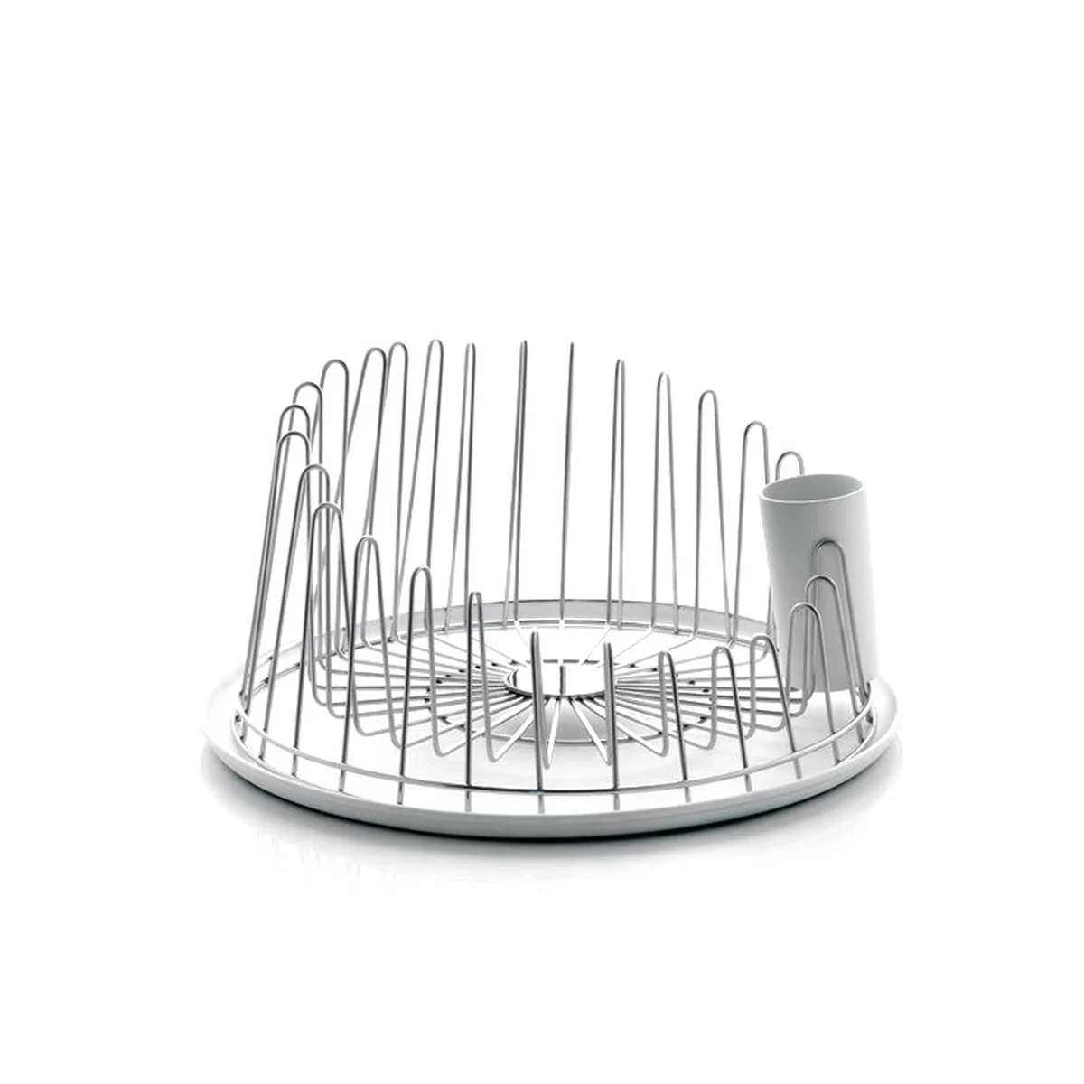 Für das Design des A Tempo Geschirrabtropfers hat Pauline Deltour Stahldraht wie ein grafisches Element bearbeitet und so die ästhetischen Qualitäten des Materials herausgestellt. Das Ergebnis ist ein ungewöhnlicher Abtropfer mit einer neuartigen Formensprache und besonderen optischen Effekten.