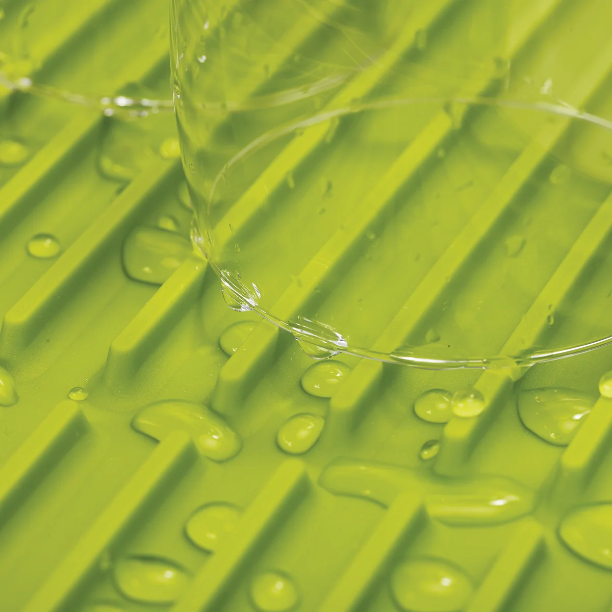 Dank der Fertigung aus weichem Gummi ist die Joseph Joseph Abtropfmatte auch für empfindliches Geschirr bestens geeignet. Nach dem Gebrauch kann die Flume Abtropfmatte einfach gereinigt werden und verschwindet anschließend wieder platzsparend im Schrank.