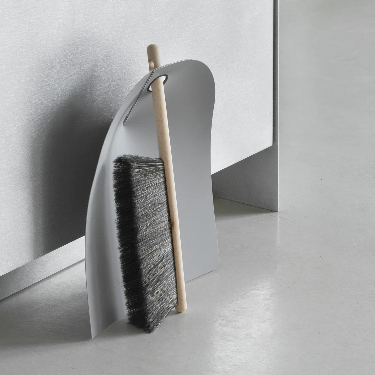 Der Handfeger mit Kehrblech von Normann Copenhagen ist funktional und extrem haltbar. Gestaltet wurde der Haushaltshelfer von Ole Jensen.