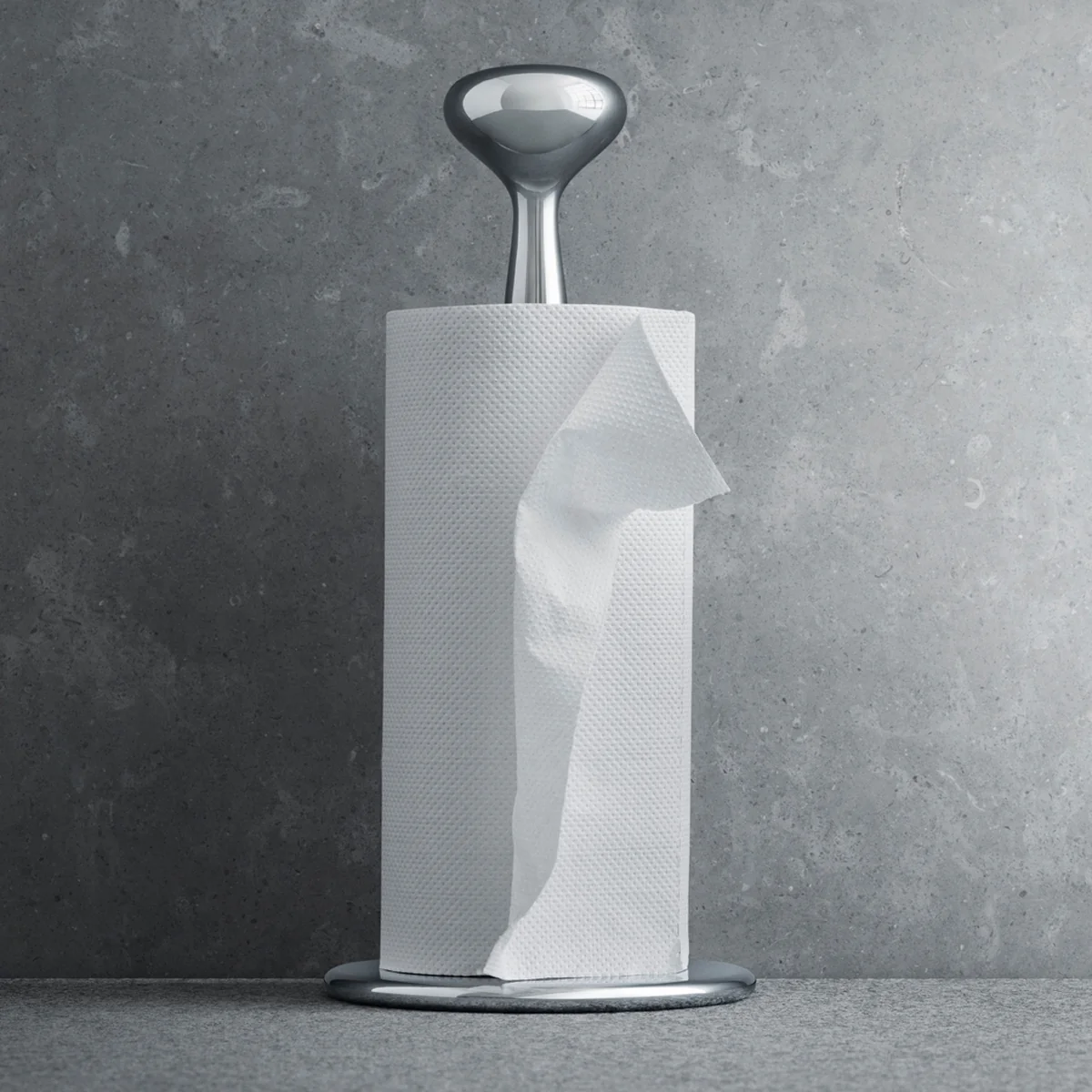 Der Alfredo Küchenrollenhalter von Georg Jensen ermöglicht das mühelose Abrollen und Aufbewahren von Papierhandtüchern und vereint dabei Funktionalität und Ausdruck. Er ist Teil der Alfredo-Kollektion, die der Designer Alfredo Häberli für Georg Jensen entworfen hat.