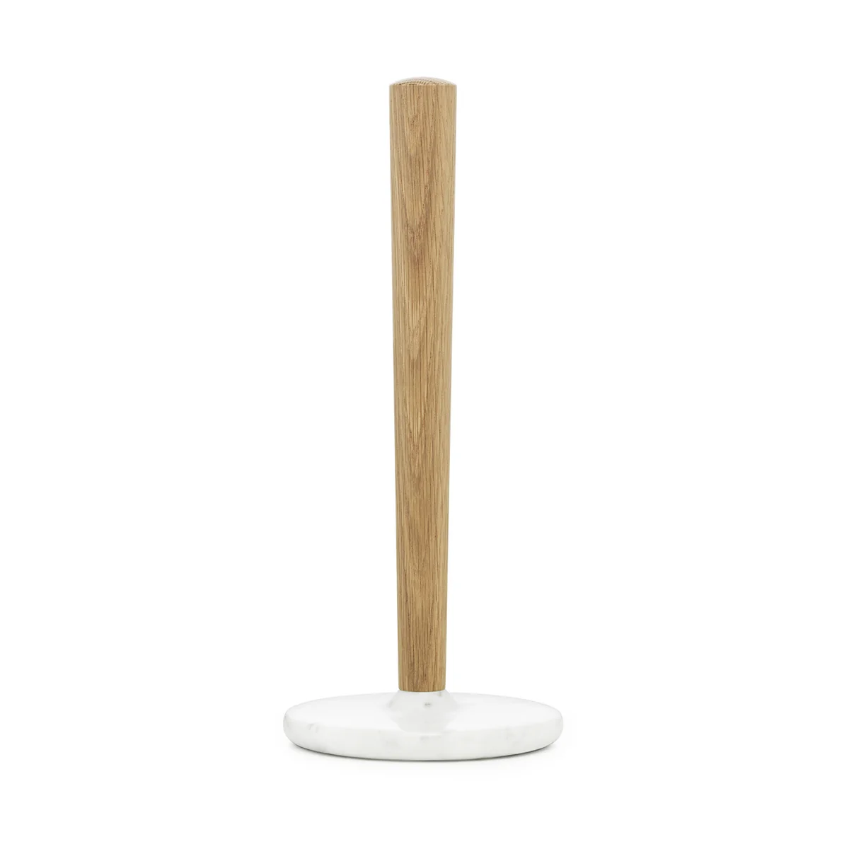 Der stilvolle Craft Küchenrollenhalter von Normann Copenhagen ermöglicht es die Küchenrolle auf ästhetische und zugleich praktische Art zu verstauen. Der Küchenrollenhalter besteht aus einem soliden Boden aus Marmor und einem schlanken, gedrechselten Eichenholz, wodurch ein elegantes und intuitives Design entsteht.