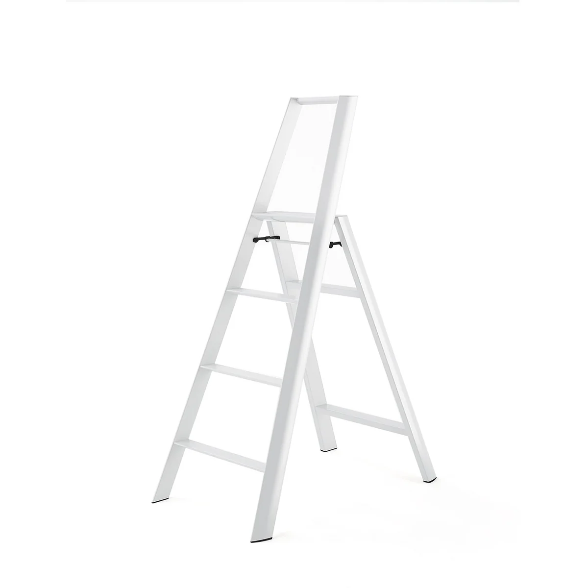 Mit der Lucano 4 Step Trittleiter hat der japanische Hersteller versucht, einen altbekannten Haushaltsgegenstand durch modernes Design aufzuwerten. Ziel dabei war es, die Leiter möglichst zurückhaltend und minimalistisch zu gestalten, sodass sie offen im Raum platziert werden kann, jedoch auch in der Abstellkammer nicht störend wirkt.
