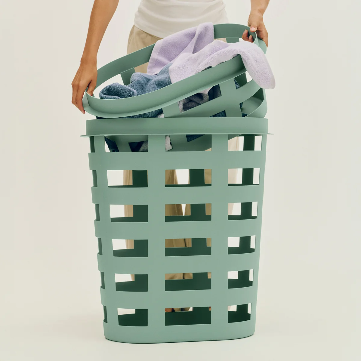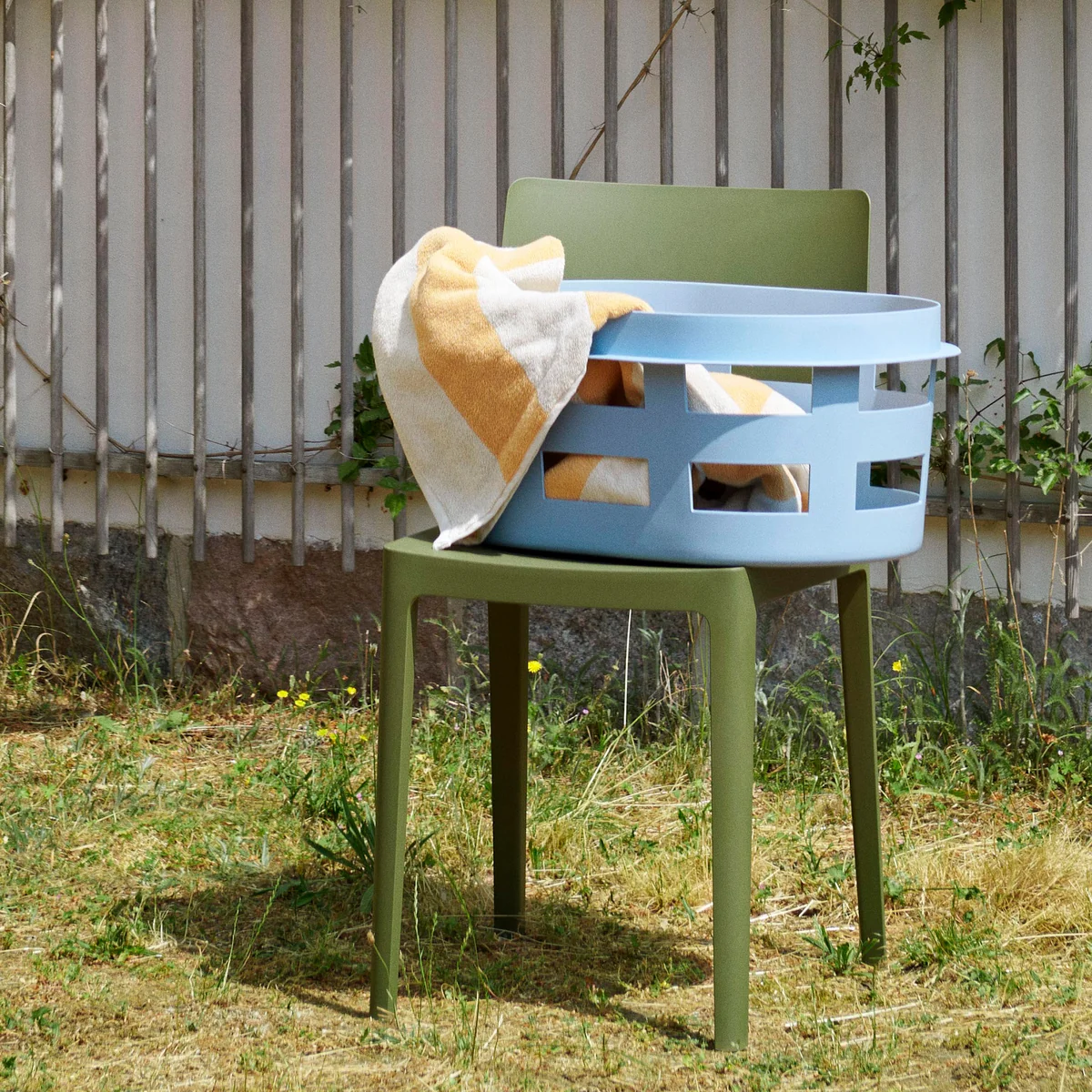 Als echtes Multitalent beherbergt der HAY Korb nicht nur Wäsche, sondern ist zum Beispiel in der Küche einsetzbar, wo er vor allem in der kleinen Variante zur Aufbewahrung von Gemüse oder Obst geeignet ist. Auch im Kinderzimmer oder Arbeitszimmer dient er der Verstauung von Spielsachen oder Büroartikeln. Erhältlich ist der Korb in zwei Größen, wobei die kleine Variante praktischerweise auf das große Model gesetzt werden kann und so als Deckel fungiert.