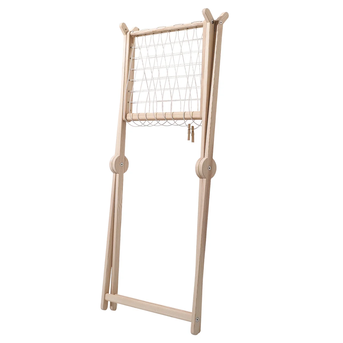 Für die Produktion des Mama Wäscheständers sind die Caritas Wendelstein Werkstätten in Rosenheim/Raubling verantwortlich. Der Entwurf der Agentur fpm München wird dort aus massivem, unbehandeltem Eschenholz realisiert. Zum Aufhängen der Wäsche werden verstärkte Kunststoffleinen verwendet.