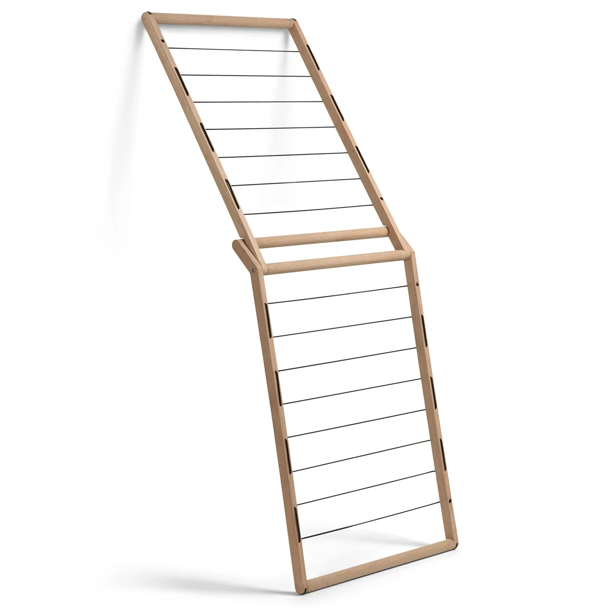 Gefertigt aus hochwertigem Eichenholz, überzeugt Dryp nicht nur durch Stabilität, sondern auch durch seine warme, natürliche Ausstrahlung. Bei Nichtgebrauch lässt sich der Wäscheständer platzsparend zusammenfalten und ordentlich verstauen. So verbindet Dryp praktischen Nutzen mit skandinavischer Designästhetik und wird zu einem stilvollen Bestandteil des Wohnraums.