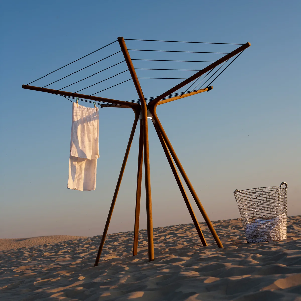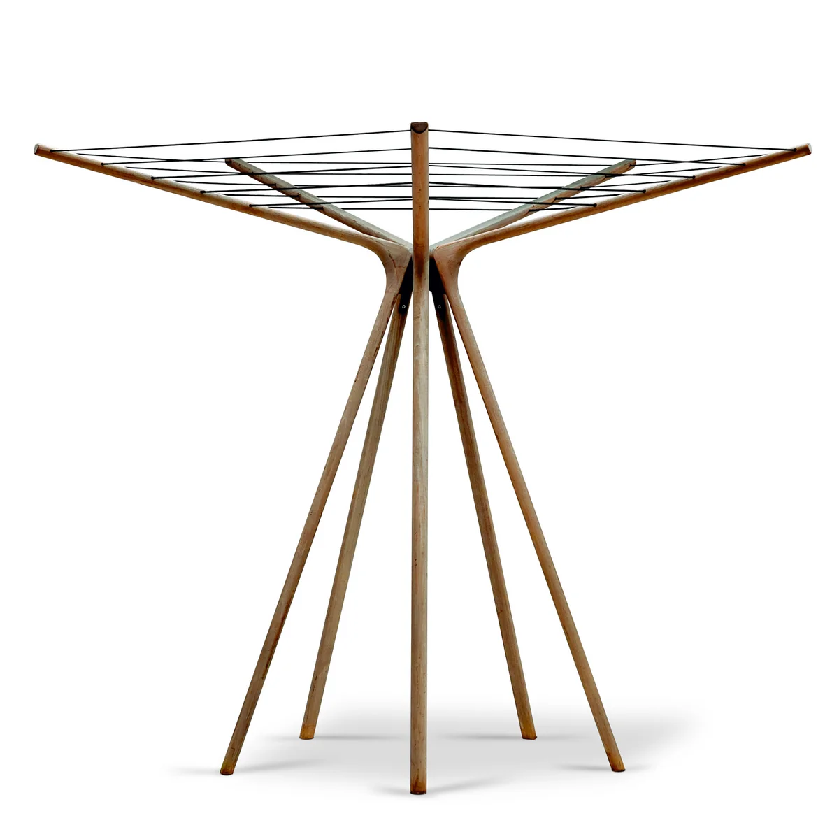 Skulpturale Wäschespinne aus Teak-Holz und Stahl