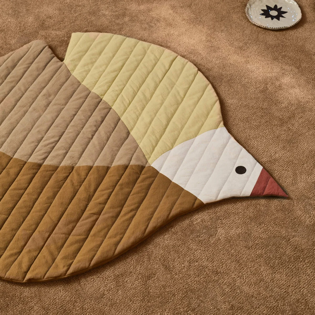 Die Swif Steppmatte von Ferm Living ist eine charmante und funktionale Ergänzung für das Kinderzimmer, die speziell für Babys und Kleinkinder entworfen wurde. In Form eines Vogels gestaltet, bietet die Matte nicht nur eine stilvolle und spielerische Optik, sondern auch höchsten Komfort. Gefertigt aus weicher Bio-Baumwolle und gefüllt mit recyceltem Polyester, sorgt sie für eine angenehme Polsterung und Wärme, während sie gleichzeitig umweltfreundlich ist. Die Steppmatte ist ideal zum Spielen, Krabbeln oder als kuschelige Unterlage für kleine Ruhepausen und verleiht dem Raum mit ihrem niedlichen Design einen Hauch von Fantasie.