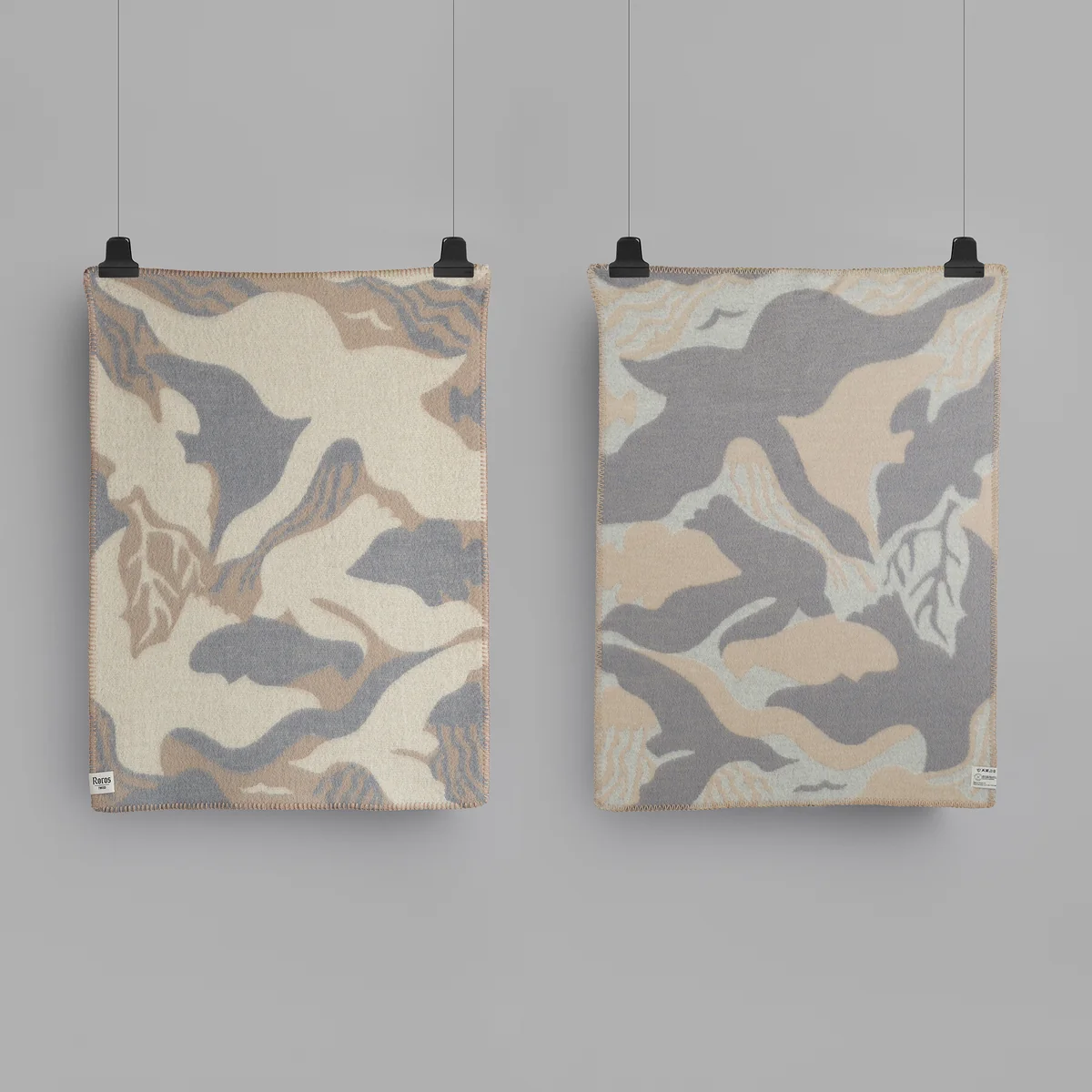 Die Fugl og Fisk Baby Wolldecke von Sandra Blikås für den norwegischen Hersteller Røros Tweed. „Fugl og fisk - Vogel und Fisch“ illustriert eine Erkundung kontrastierender Oberflächen, die vom Surrealisten M.C. Escher beeinflusst ist. Ob gespiegelt, umgedreht oder gedreht, dieses Stück verschmilzt zwei unterschiedliche Motive nahtlos zu einem einheitlichen Ganzen.