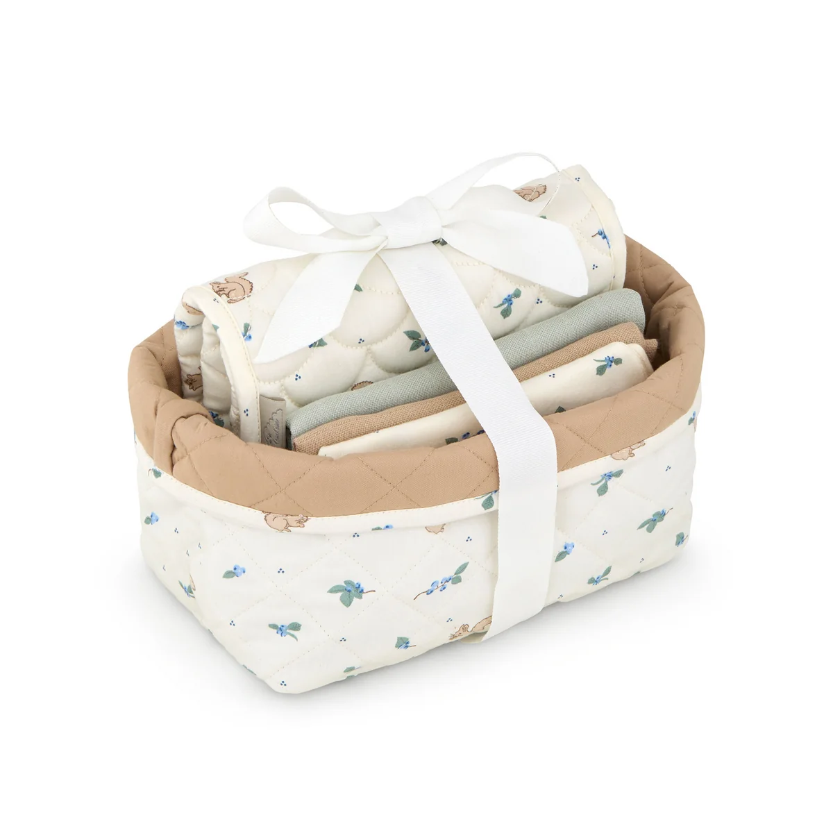 Das perfekte Geschenkset für frischgebackene Eltern: Dieses liebevoll zusammengestellte Baby Care Set kombiniert unsere beliebtesten Essentials aus 100% Bio-Baumwolle. Mit dabei ist ein gestepptes Aufbewahrungskörbchen (die größere Größe aus dem Zweier-Set), ideal für alles, was du am Wickeltisch griffbereit haben möchtest. Dazu kommen zwei weiche Lätzchen, eine praktische Wickelunterlage für unterwegs und zwei einfarbige Musselin-Tücher – unverzichtbare Helfer im Familienalltag.