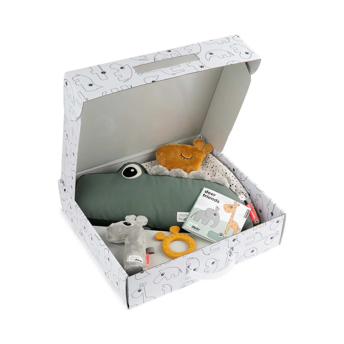 Die Geschenkbox Play Time von Done by Deer ist die perfekte Zusammenstellung der meistverkauften Baby-Spielzeuge aus dem dänischen Hause. Das Set besteht aus dem Tummy Time Activity Toy, der Comfort Blanket mit Raffi, einem Silikon Beißring und einer Squeeker Rassel mit Raffi. Play Time ist das perfekte Starterset für die kleinsten Familienmitglieder. Im Lieferumfang ist ein Deer-Friends-Buch enthalten. In unterschiedlichen Farben erhältlich.