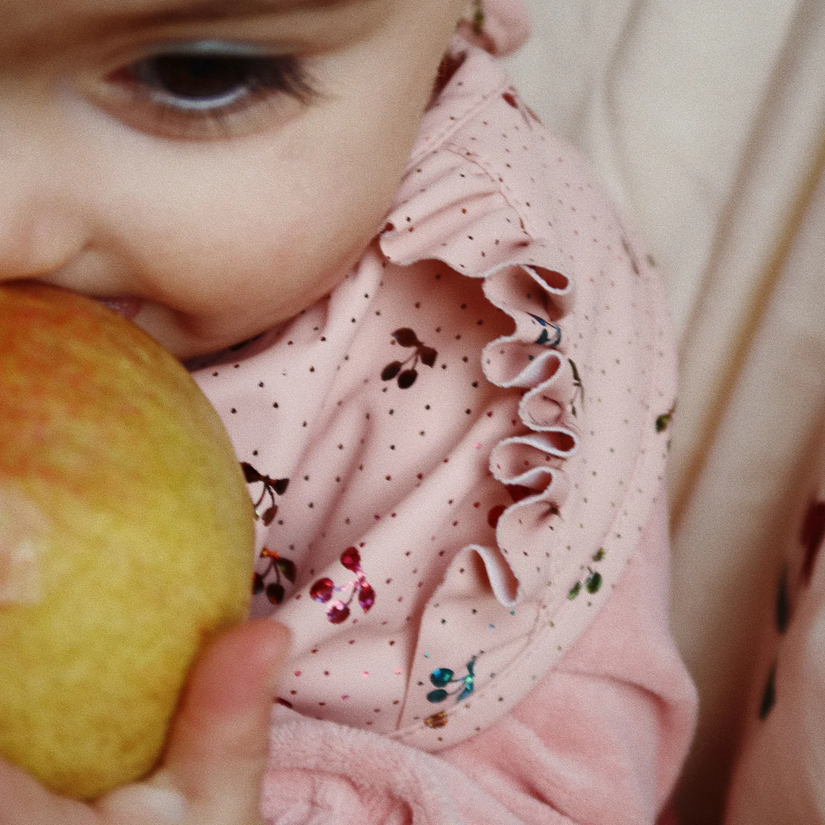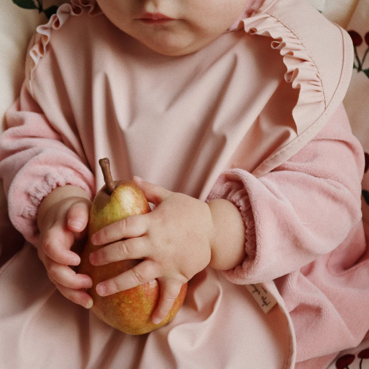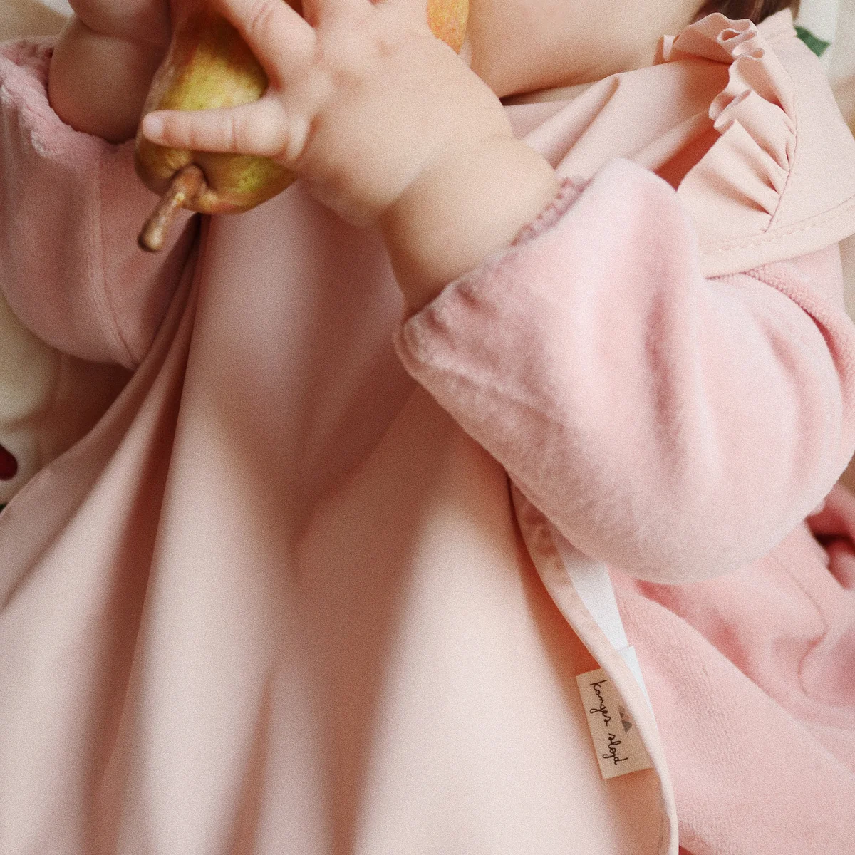 Das Lätzchen mit Rüschen von Konges Sløjd gestaltet die Essenszeit stilvoll und stressfrei. Mit ihren charmanten Rüschendetails und der wasserabweisenden Oberfläche sind diese Lätzchen perfekt geeignet, um die Kleidung des Kindes sauber zu halten und gleichzeitig einen Hauch von Flair in das Outfit zu bringen.