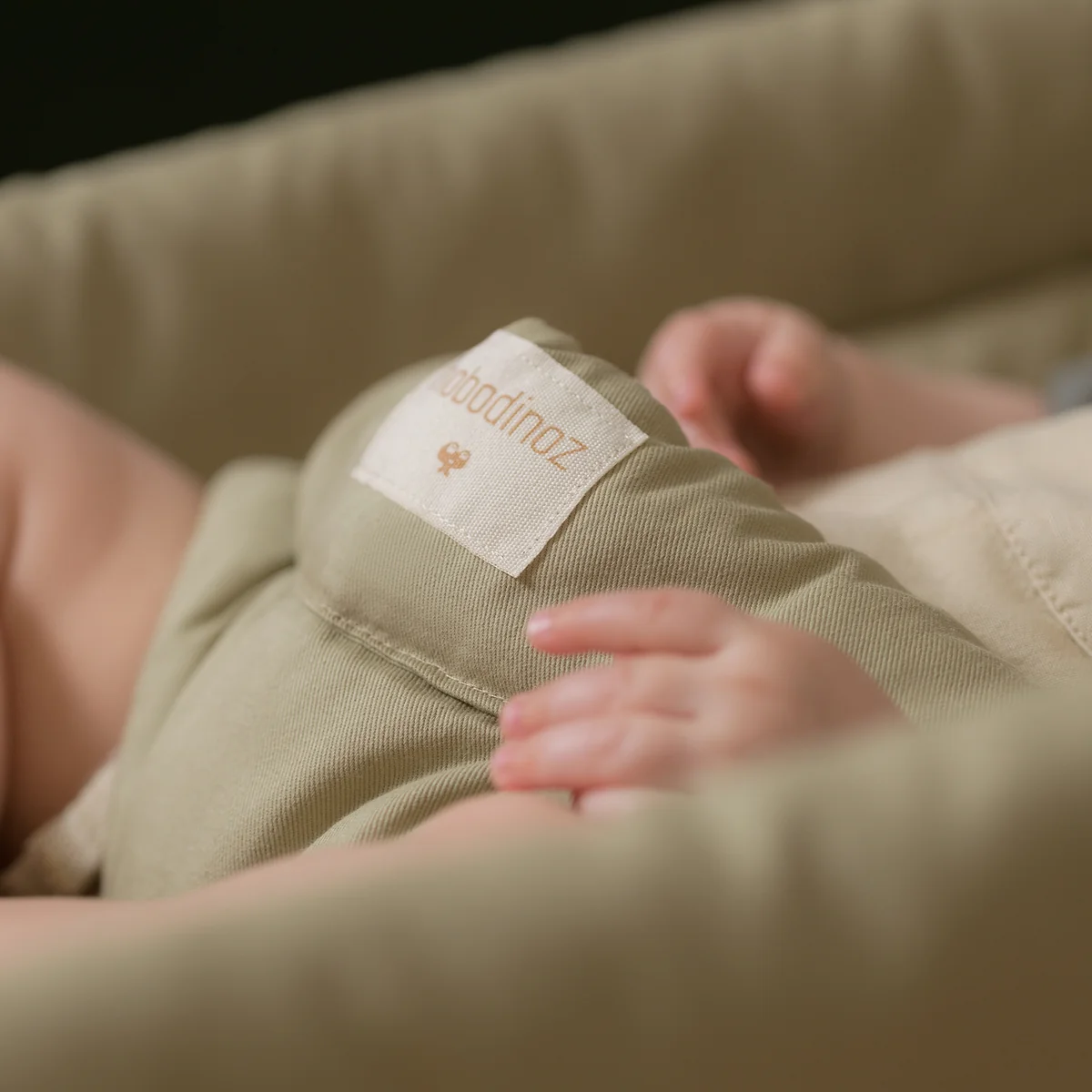 Hergestellt wird die Growing Green Babywippe von Nobodinoz aus massivem Buchenholz. Der Bezug aus organischer Baumwolle ist per Reißverschluss abnehmbar und lässt sich mit der Hand reinigen.