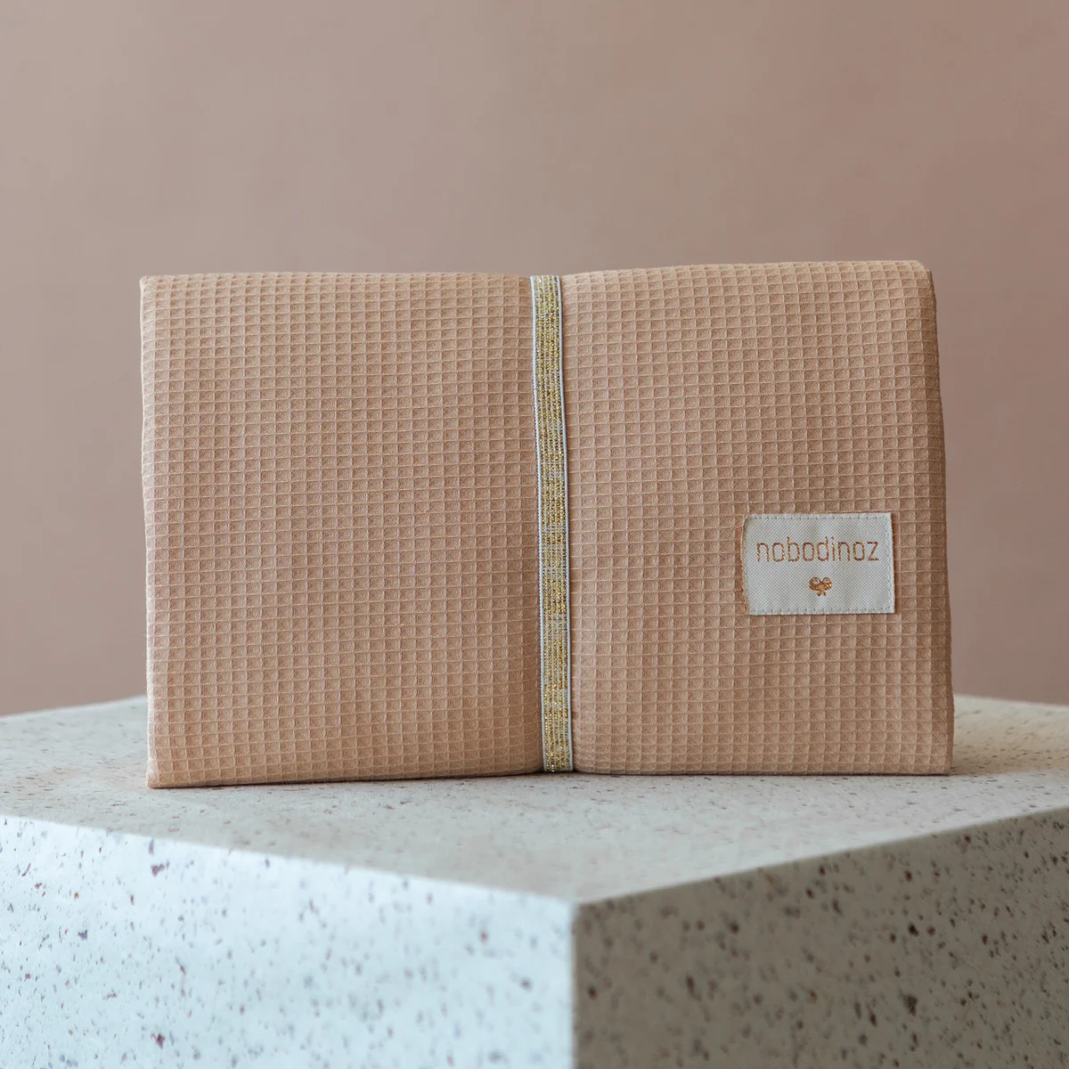 Die Mozart Wickelunterlage ist der ideale Begleiter für unterwegs. Mit ihr wird das Wickeln an jedem Ort zum Kinderspiel. Sie kann einfach eingerollt und mit dem mitgelieferten goldenen Gummiband zusammen gehalten werden.