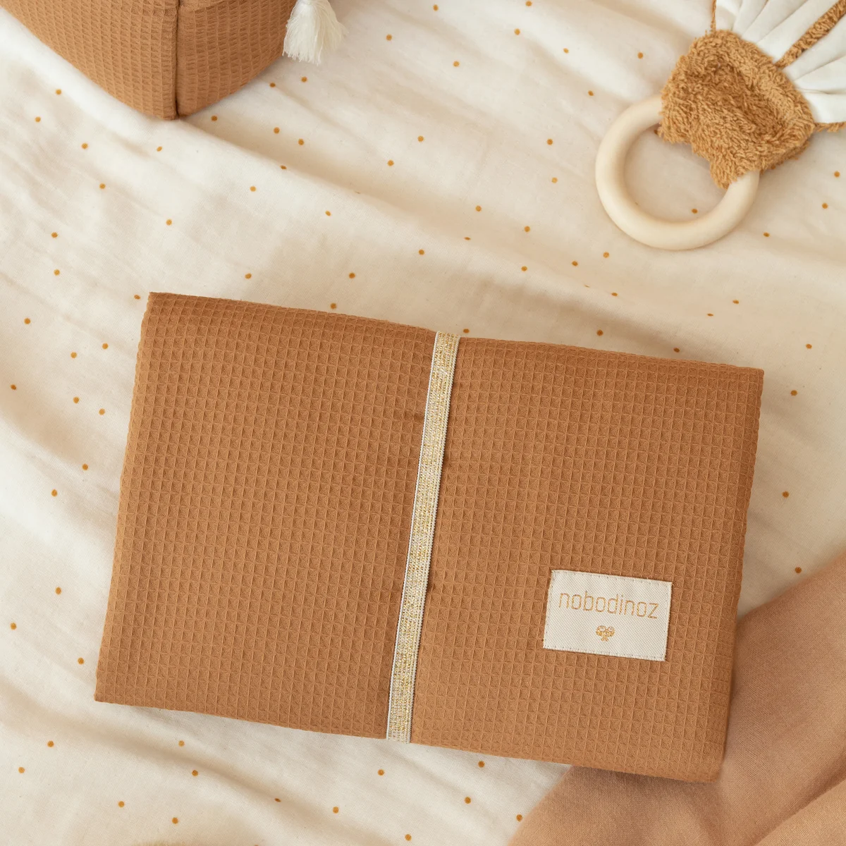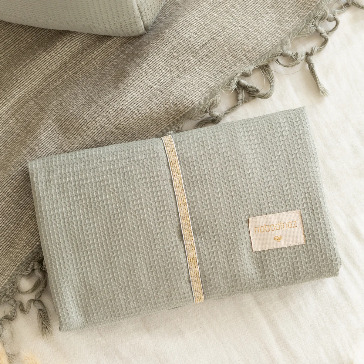 Das wasserdichte Innenfutter und der Baumwoll-Stoff machen die Mozart Wickelunterlage von Nobodinoz besonders gemütlich für das Baby. Zudem hat sich Nobodinoz ein raffiniertes Detail überlegt: An der Wickelunterlage ist eine Reißverschlusstasche integriert, in der Babytücher praktisch aufbewahrt werden können.