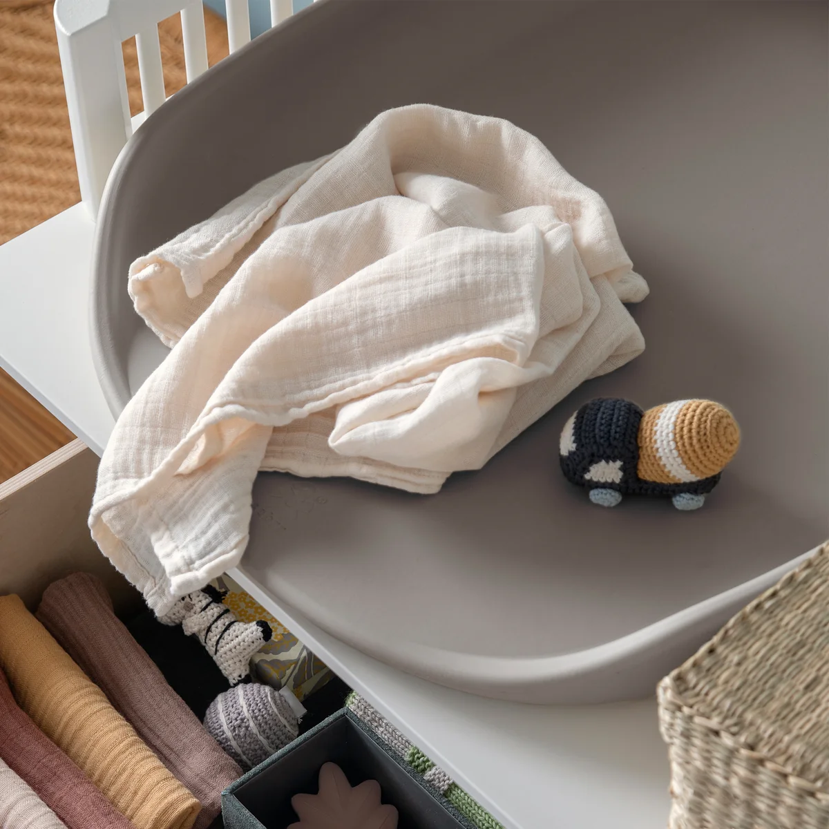 Zudem verhindert die hohe Kante, dass das Baby von der Matte rollt oder seinen Kopf an harten Kommodenkanten stößt.