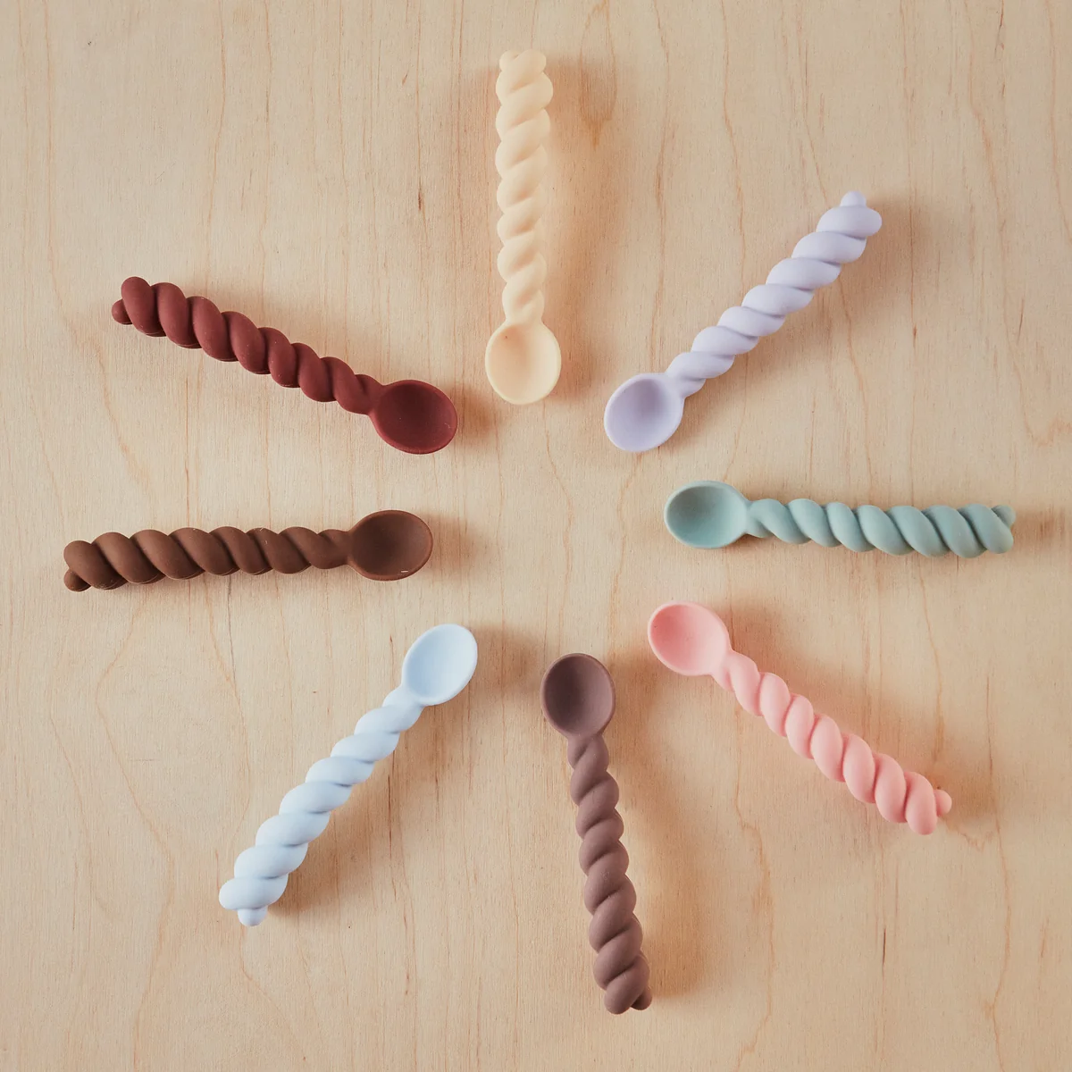 Die bunten Löffel werden aus 100 % Silikon gefertigt und sind in unterschiedlichen Varianten im 3er-Set erhältlich.