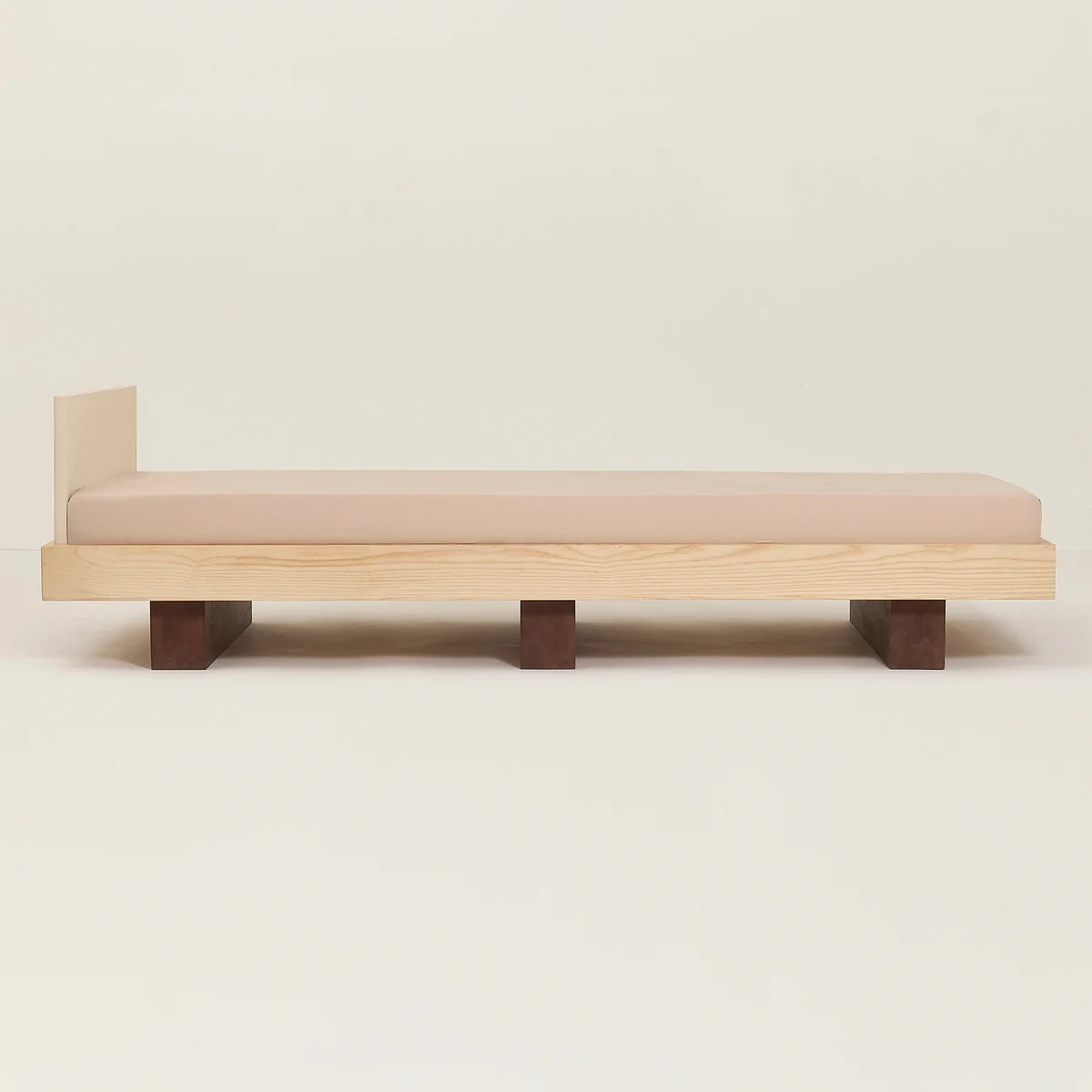Durch das Entfernen der Seitenelemente lässt sich das Bett ganz einfach in ein stilvolles Tagesbett verwandeln – ideal für die Kuschelecke, den Flur oder als vielseitige Ruhezone im Wohnbereich. Die Kombination aus hellem und dunkel gebeiztem Holz sorgt dabei für einen edlen Kontrast mit zeitloser Ausstrahlung.