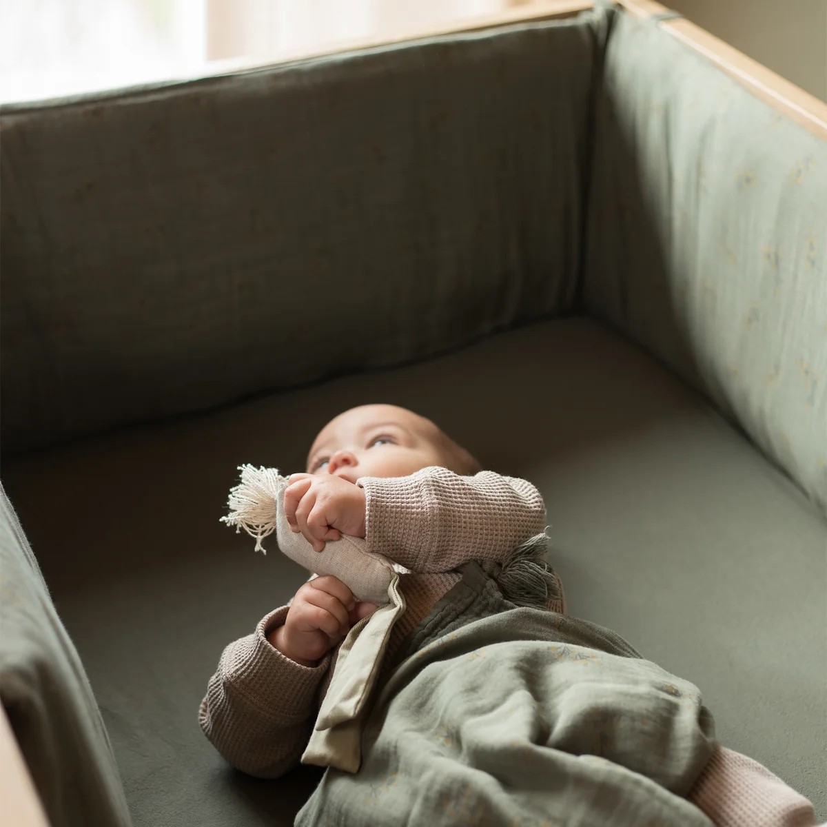 Die Nobodinoz Wabi Sabi Bettumrandung ist eine stilvolle und praktische Ergänzung für jedes Kinderzimmer. Mit ihrem zeitlosen Design und den natürlichen Farben fügt sie sich nahtlos in jede Einrichtung ein und verleiht dem Raum eine gemütliche Atmosphäre.