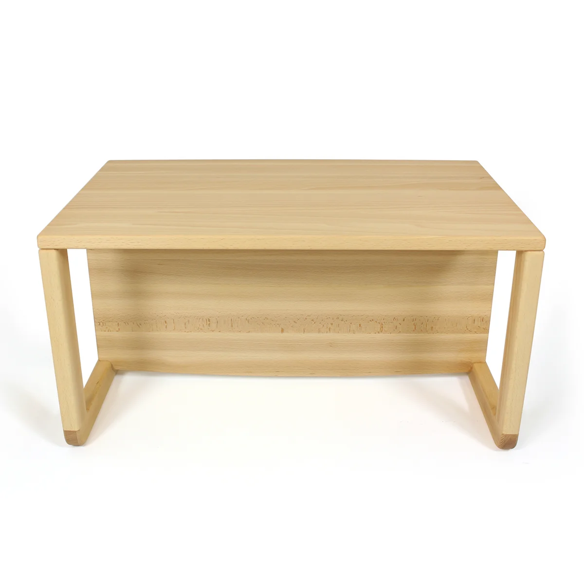 Das Multifunktionsmöbel von Jan Kurtz fungiert als Bank und Tisch für Kinder: Um 90° gedreht, ändert es im Handumdrehen seine Funktion. Je nachdem welche Sitz-Seite nach oben zeigt, variiert auch die Sitzhöhe zwischen 17 und 20 cm - so wächst die von Matthias Philipps gestaltete Kinderbank einfach mit.