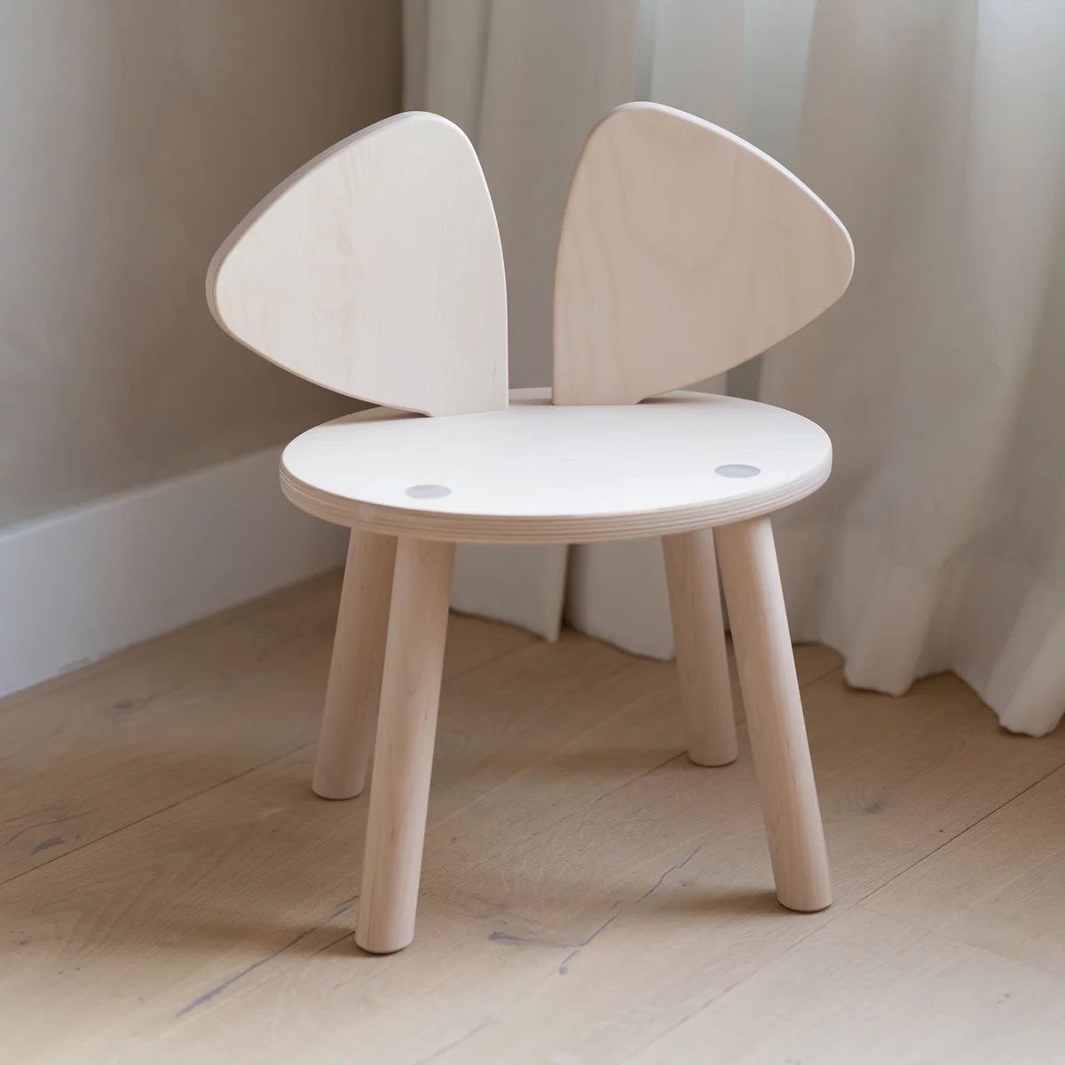 Kinderstuhl aus Holz mit Mäuseohren