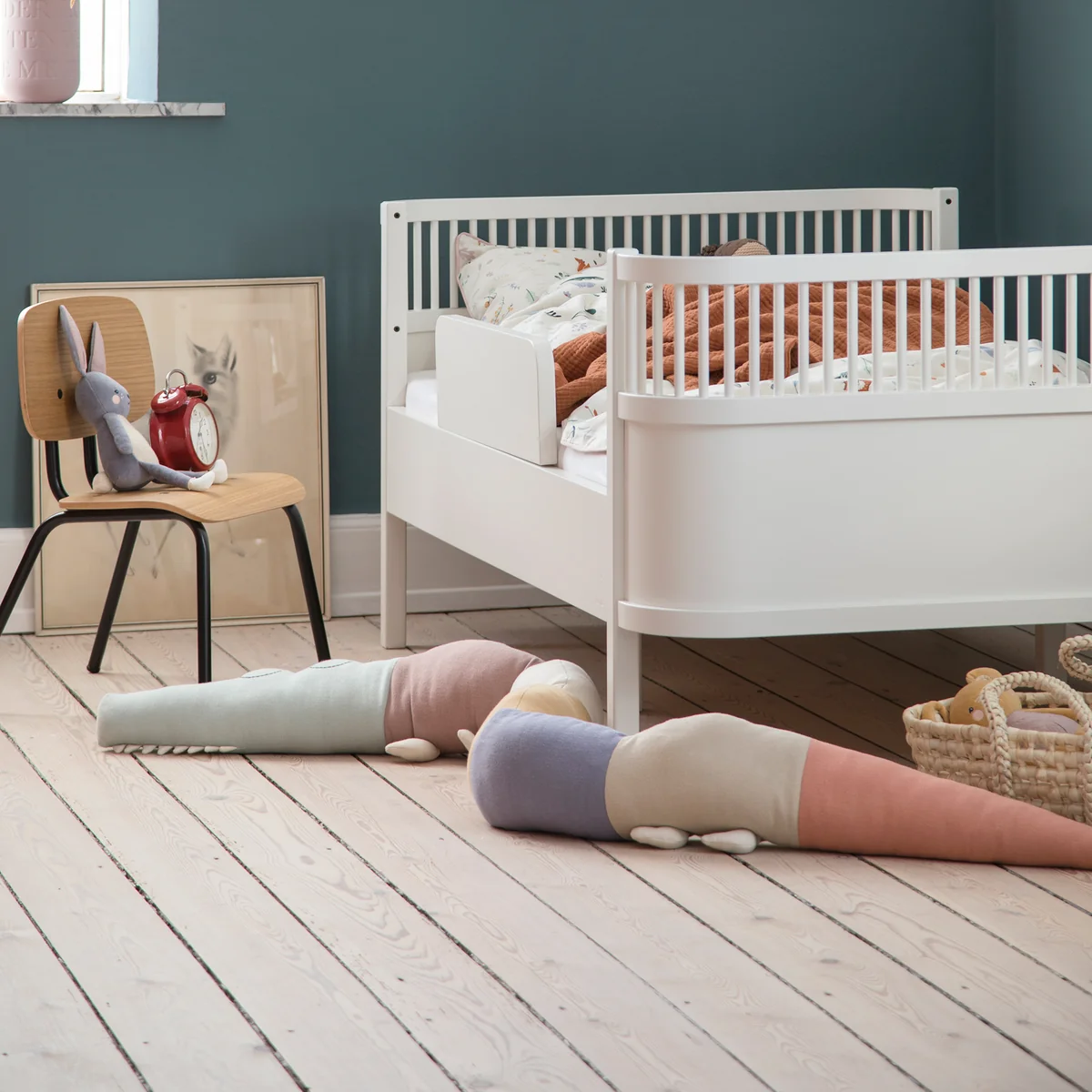 Der Oakee Kinderstuhl von Sebra zeigt sich als kleines, hübsches und minimalistisches Möbelstück im Kinderzimmer, das sowohl als Sitzgelegenheit als auch als Ablage für Kleidung und Co. dient.