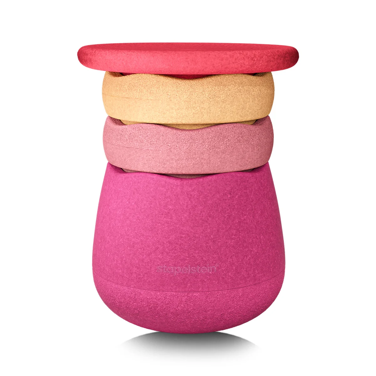Mit dem Stapelstein® Dynamic Set wird aktives Sitzen zum festen Bestandteil eures Alltags – ganz gleich ob im Kinderzimmer, Homeoffice oder beim Yoga. Das Set besteht aus einer Base, einem Board und zwei Originals und lässt sich in Sekundenschnelle anpassen – ohne Schrauben, ohne Werkzeug. Die gewölbte Unterseite der Base sorgt für sanfte Mikrobewegungen, die Rücken und Konzentration stärken, während das Board Balance und Koordination fördert.