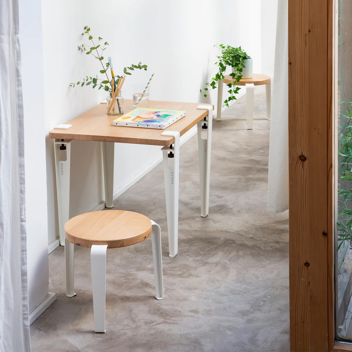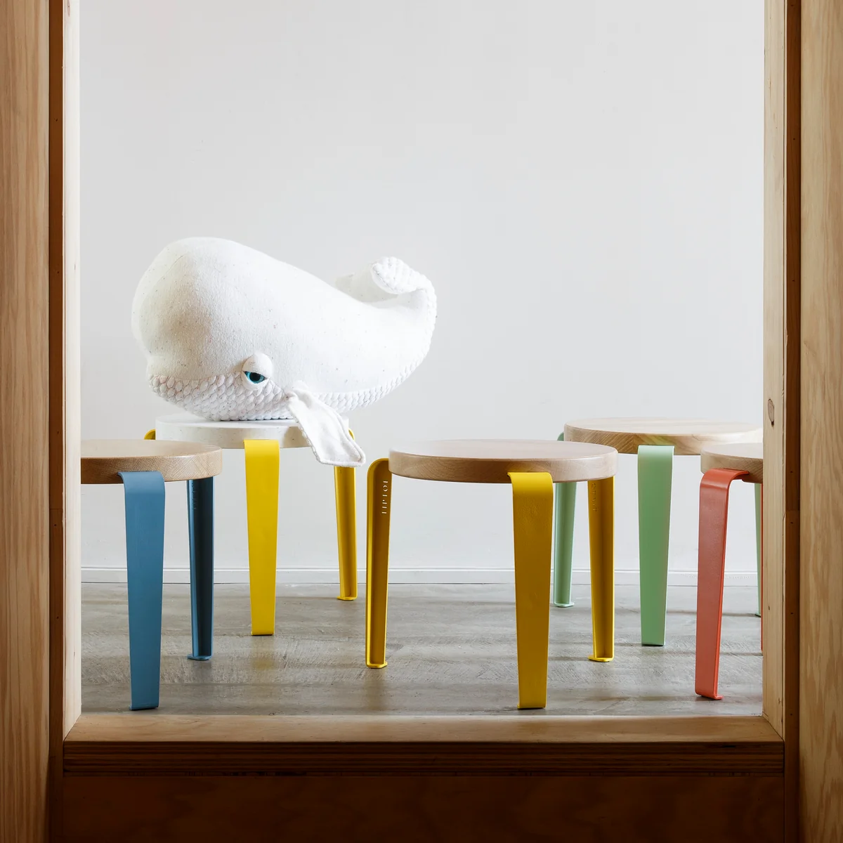 Nachhaltiger Kinderhocker aus Holz und Stahl