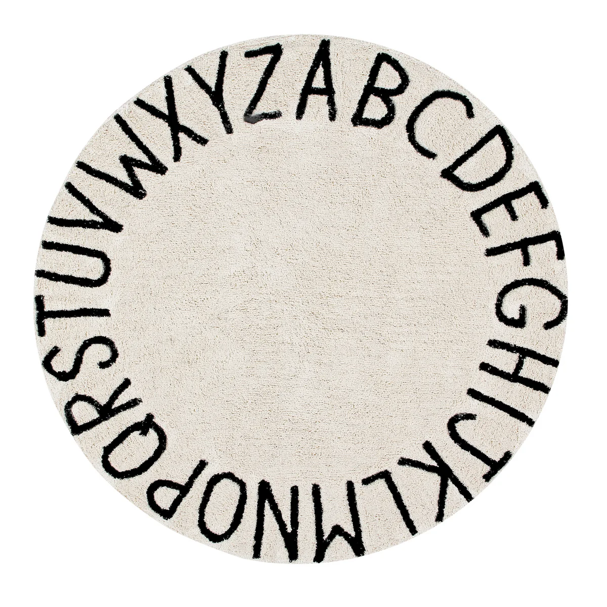 Runder, waschbarer Teppich in Alphabet-Design