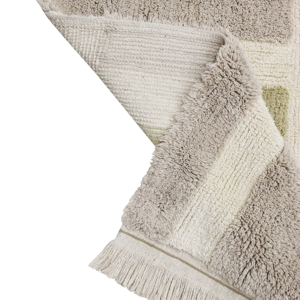 Der flexible Baumwollteppich ist leicht zu falten, lagern und waschen. Jedes Stück wird in Indien handgefertigt, weshalb es zu leichten Abweichungen der Unikate kommen kann.