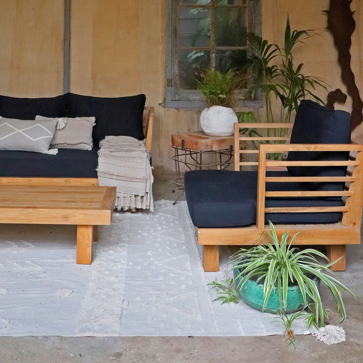Erleben Sie die Verbindung zur Natur mit dem Tribu Teppich von Lorena Canals. Dieses aus Liebe handgemachte Stück aus natürlicher Baumwolle vereint erdige Farbtöne und nachhaltige Materialien. Die Neuauflage des Azteca-Designs bietet eine ruhige, ethnische Ausstrahlung. Der Teppich ist vielseitig einsetzbar als Teppich, Tagesdecke, Wandbehang, Picknickdecke oder Tischdecke – und ist dabei waschbar für pflegeleichte Eleganz.