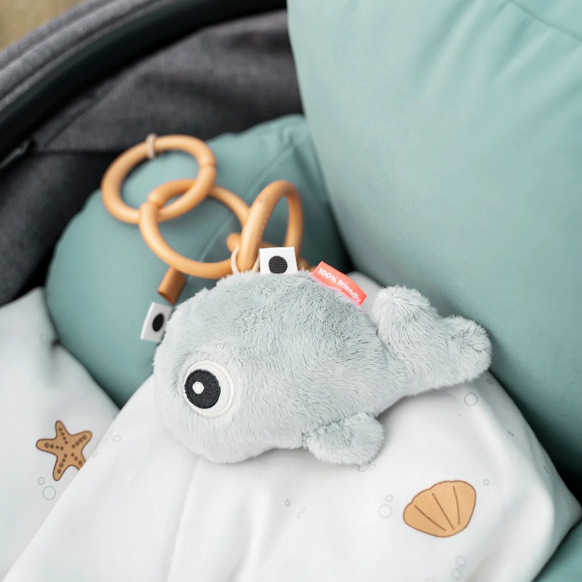 Die niedliche Rassel von Done by Deer ist in einer Vielzahl von unterschiedlichen Tier-Designs erhältlich.