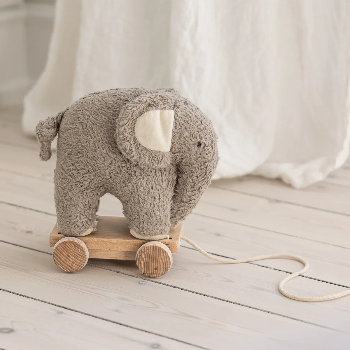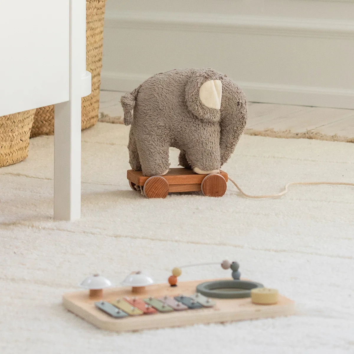 Dank der praktischen Baumwoll-Zugschnur kann Ihr Kind das Nachziehtier überallhin mitnehmen – auf Spaziergänge durchs Haus oder auf kleine Abenteuer im Kinderzimmer. Und wenn es mal schmutzig wird, lässt sich das Plüschtier einfach von der Holzplatte lösen und bei 30 °C waschen. Ein charmantes Spielzeug, das zugleich als dekoratives Detail im Kinderzimmer begeistert.