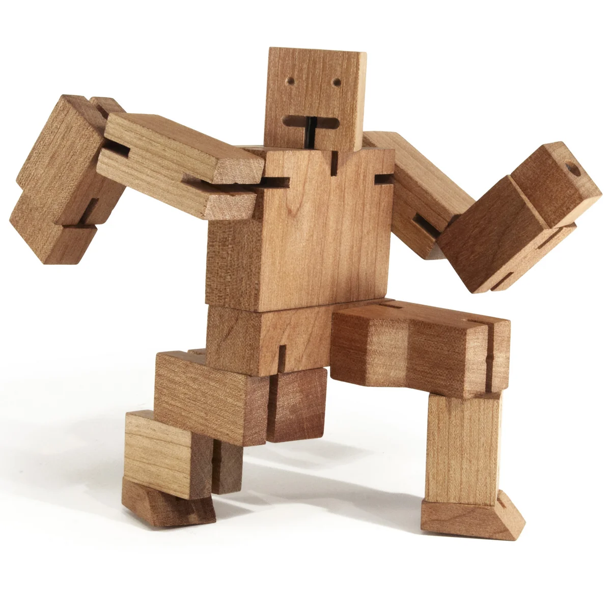 Roboter-Spielzeuge bestehen traditionell aus Kunststoff und benötigen eine Batterie. Nicht so der Cubebot von Areaware. Inspiriert von den japanischen Shinto Kumi-ki Puzzles, entwarf der Designer David Weeks seinen Cubebot aus Buchenholz.