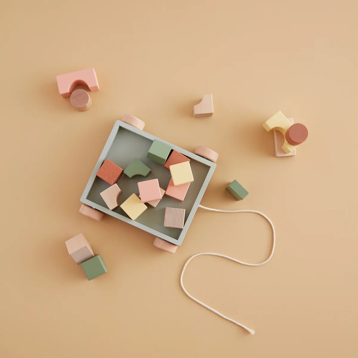 Der Edvin Wagen mit Holzklötzen von Kids Concept wird aus naturbelassenem Holz gefertigt und mit 20 gebeizten Holzklötzen geliefert, die vereint zwei zeitlose Spielzeuge in einem einzigen Paket verbinden. Kinder werden ihre Freude daran haben, ihre geliebten Spielsachen in diesem Holzwagen zu ziehen. Die Gummiringe an den Rädern minimieren nicht nur die Geräusche, sondern schonen auch den Boden. Darüber hinaus bietet das Set die Möglichkeit, mit den Holzklötzen zu spielen und zu bauen. Die Holzklötze sind in verschiedenen Formen und Größen erhältlich, so dass sie von kleinen Händen leicht zu handhaben sind.