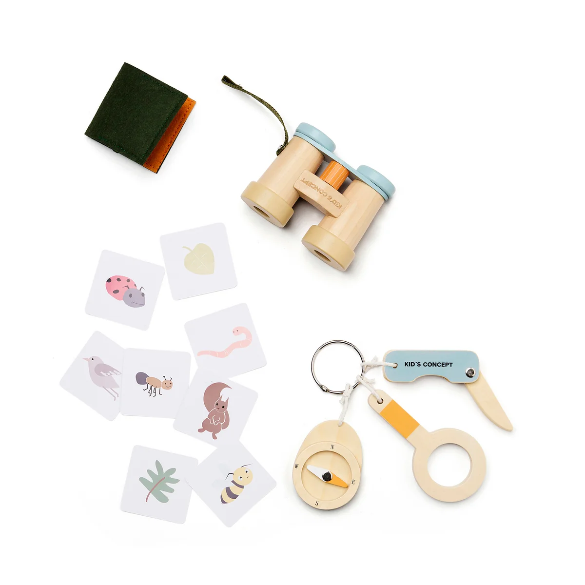 Das Kid's Hub Expeditionsset von Kids Concept enthält alles, was junge Naturforscher brauchen, um ihre Umgebung zu erkunden und spannende Entdeckungen zu machen. Mit einem hochwertigen Fernglas, einem handlichen Taschenmesser, einer leistungsstarken Lupe, einem präzisen Kompass, 8 laminierten Entdeckerkarten und einem faltbaren Kartenhalter sind die Möglichkeiten endlos.