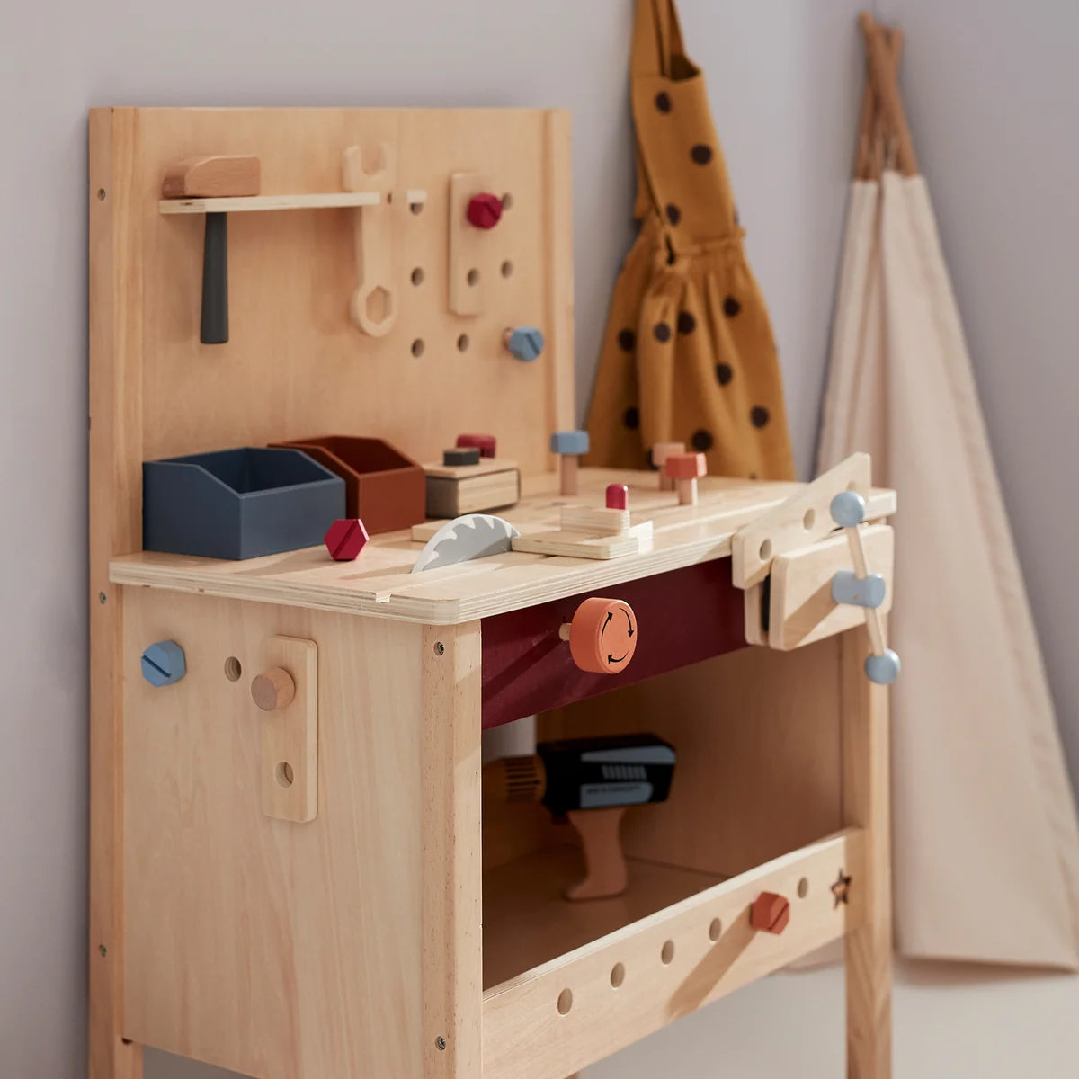 Kids Concept - Kid's Hub Werkbank mit Zubehör, 55 x 36 x 80 cm, bunt (21er-Set)