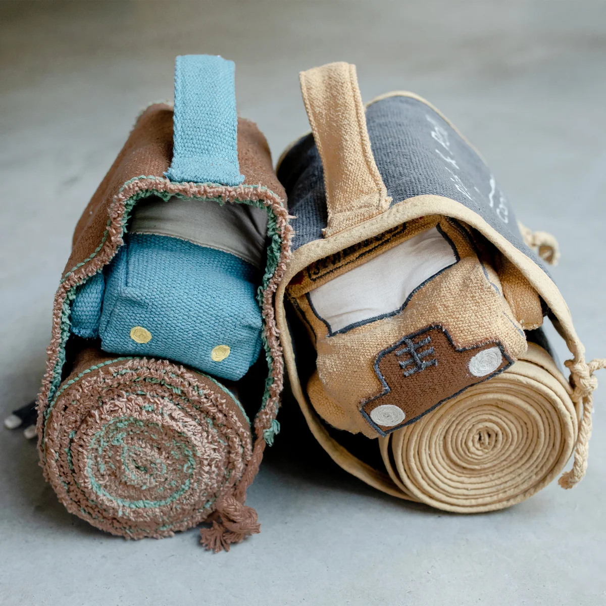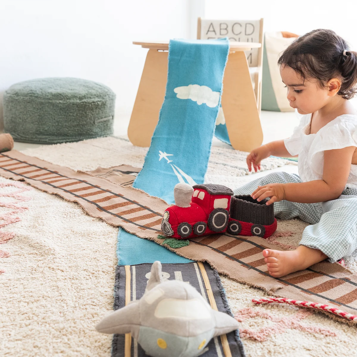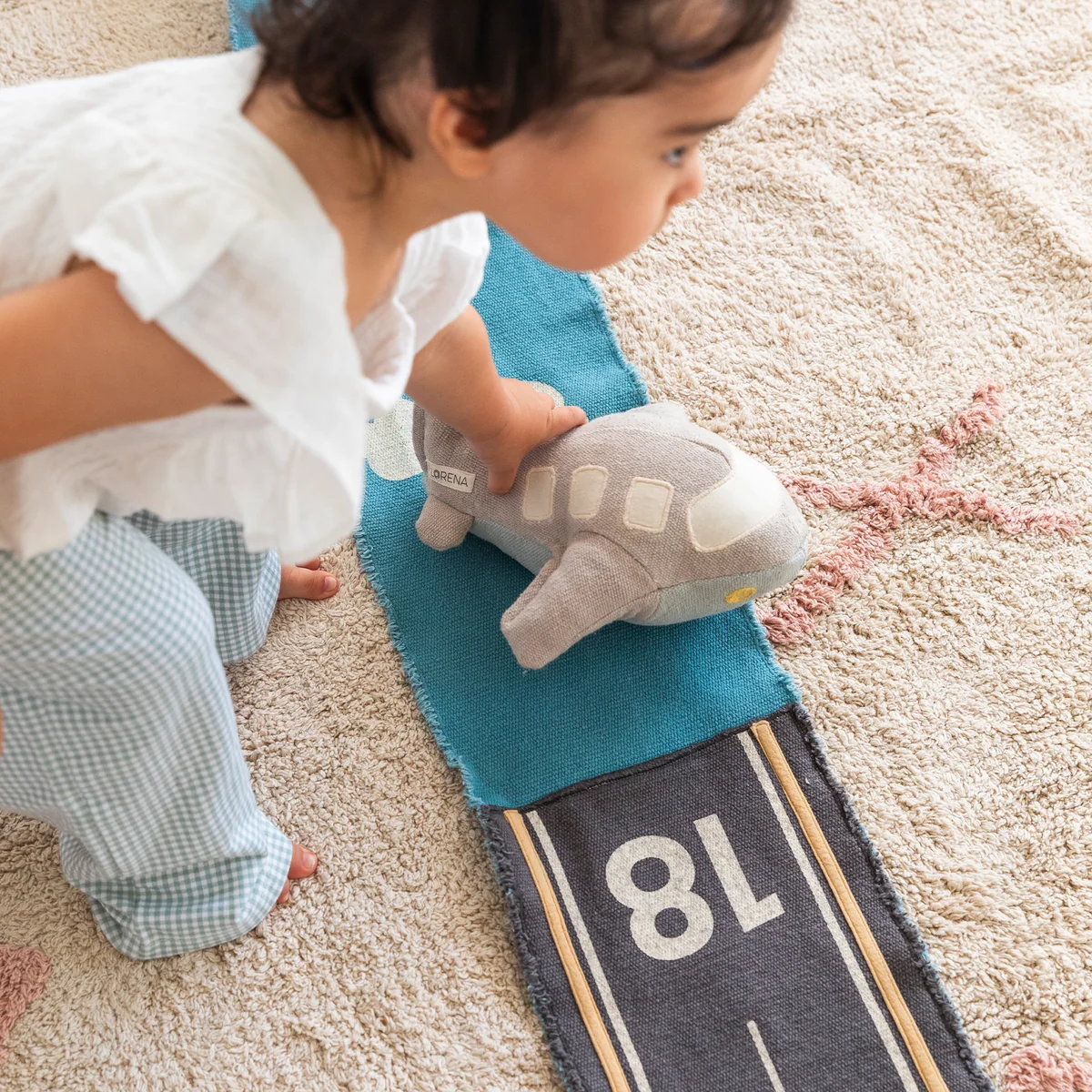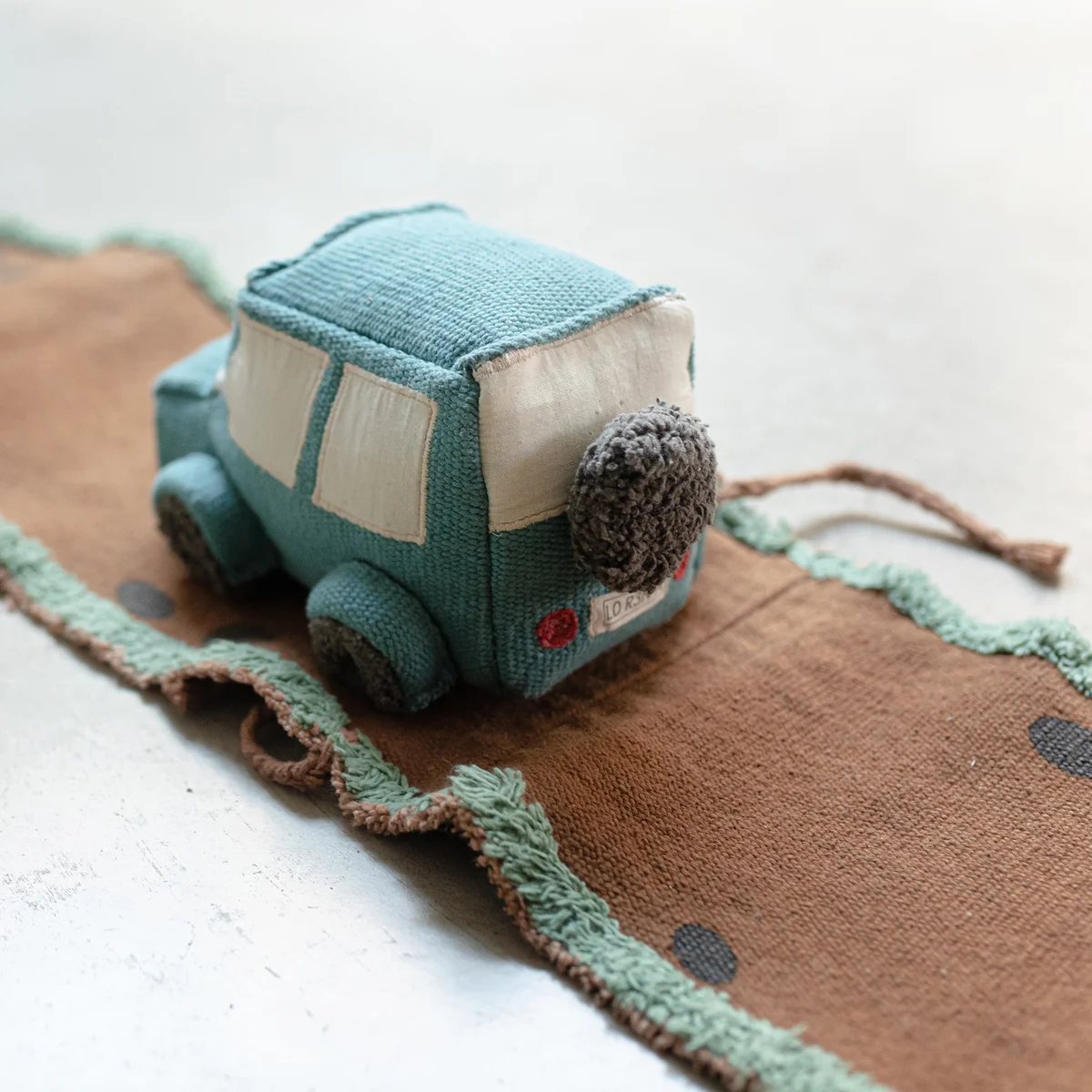 Das Ride & Roll Spielset des Herstellers Lorena Canals bietet eine Menge Fahrspaß! Das Set ermöglicht, dass Kinder den langen Planenweg überall ausrollen und mit dem Stoffbus diesen befahren können. Die Baumwollplane ist vier Meter lang und wird aus Baumwolle und Polyester gefertigt.