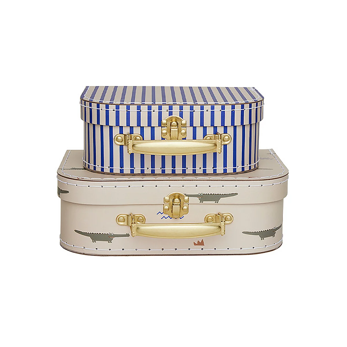 Der Mini-Koffer Toucan & Stripe von OYOY Mini ist ein Must-have in jedem Kinderzimmer. Kinder werden es genießen, damit zu spielen und ihre Lieblingsspielzeuge in diesen entzückenden Koffern mit weichem Druck zu verstauen. Dieses Set aus Pappe wird im Doppelpack in zwei verschiedenen Größen geliefert. In unterschiedlichen Farbausführungen erhältlich.