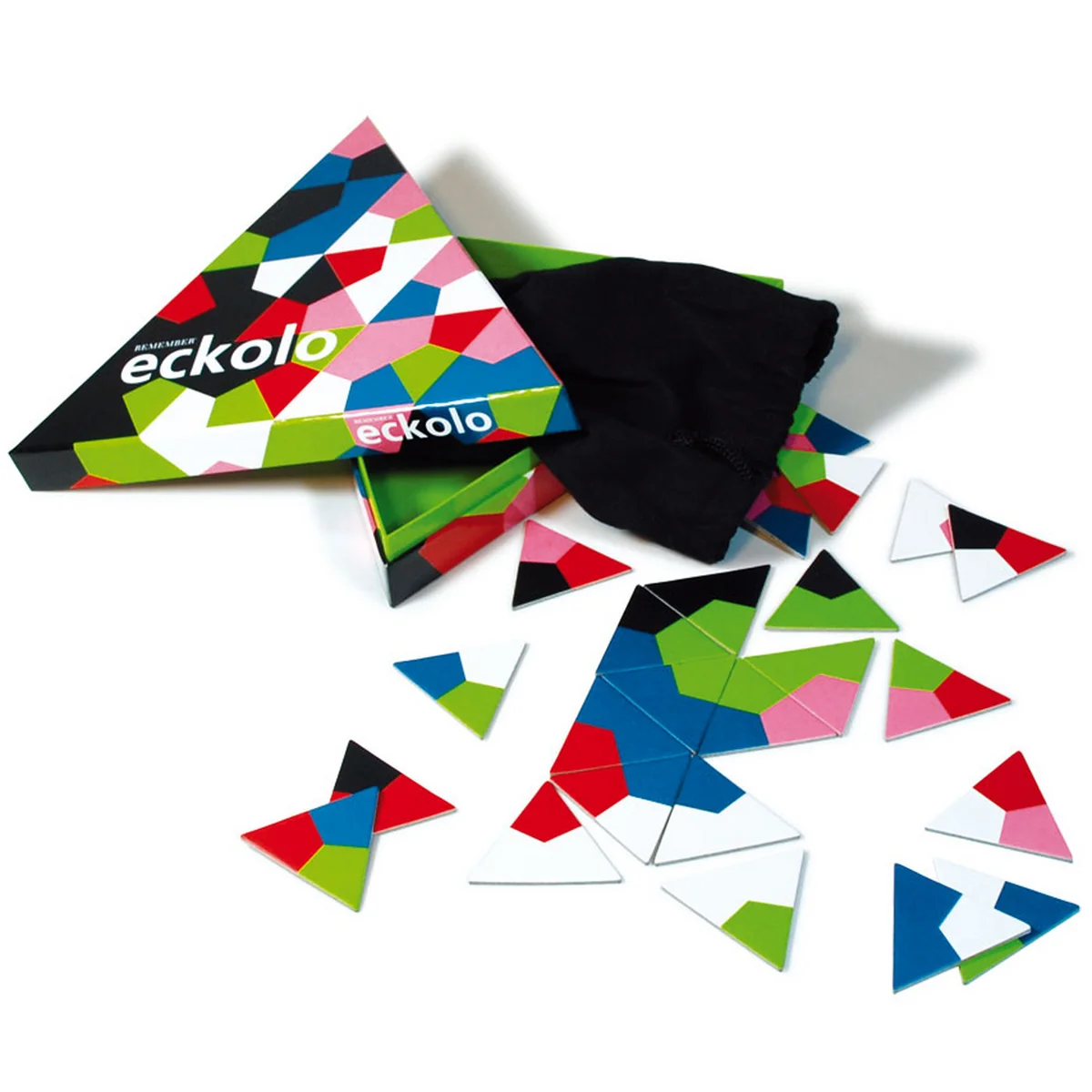 Eckolo ist ein farbenfrohes Anlegespiel für mehrere Personen, Jung und Alt. Neben den einfachen Regeln garantieren auch die immer wieder neu entstehenden Formen und Farbkombinationen, das Design und die Aufmachung des Spiels Spaß ohne Ende.