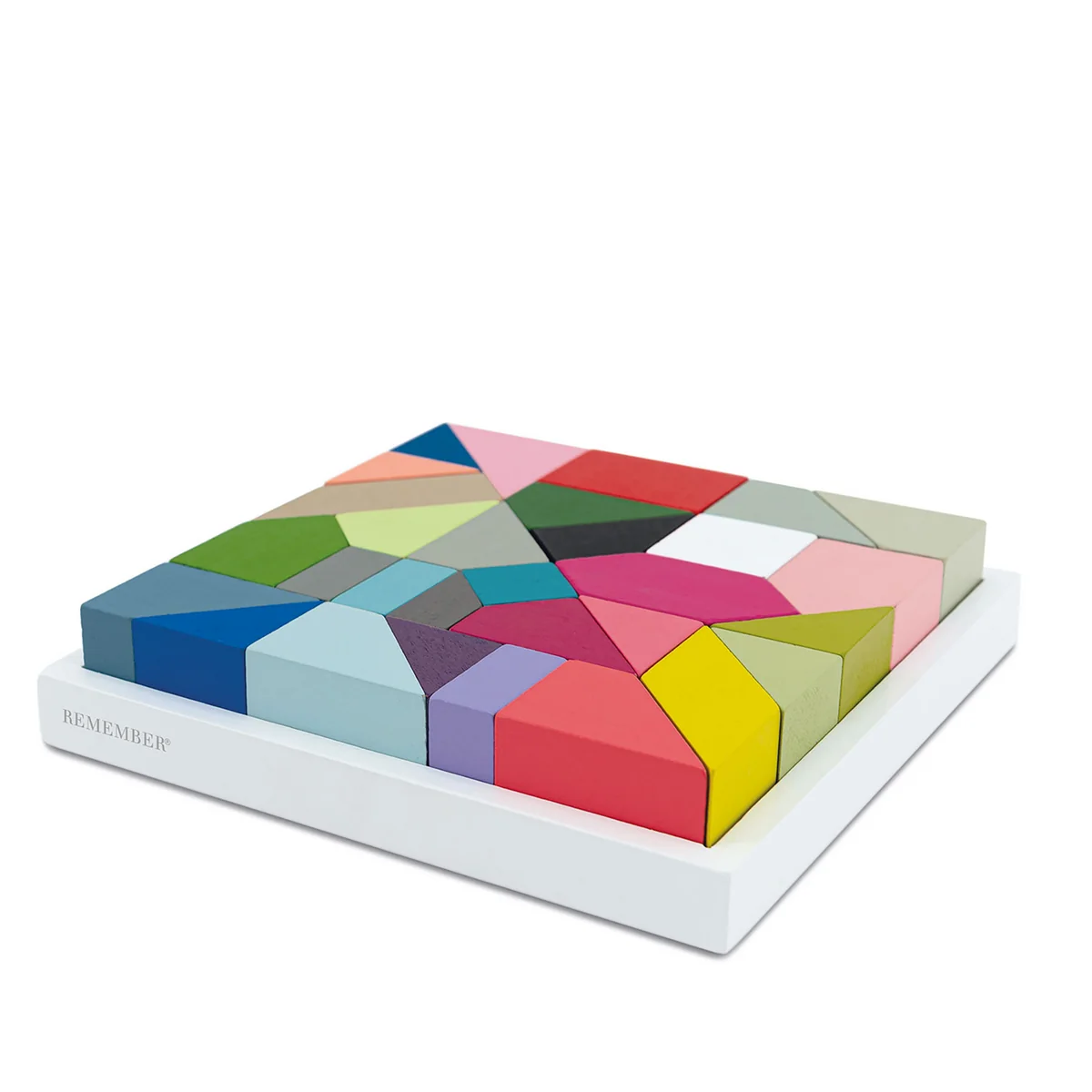 Das Holzpuzzle Thirty von Remember ist ein Kreativbaukasten bestehend aus 30 Bausteinen in 30 Farben, die unendliche Möglichkeiten bieten.