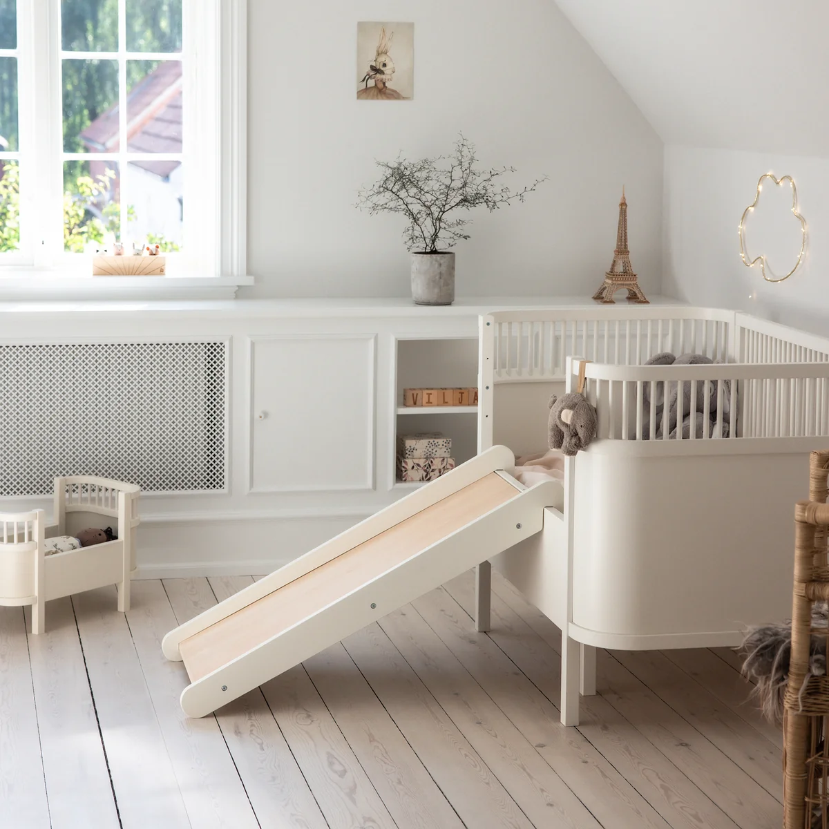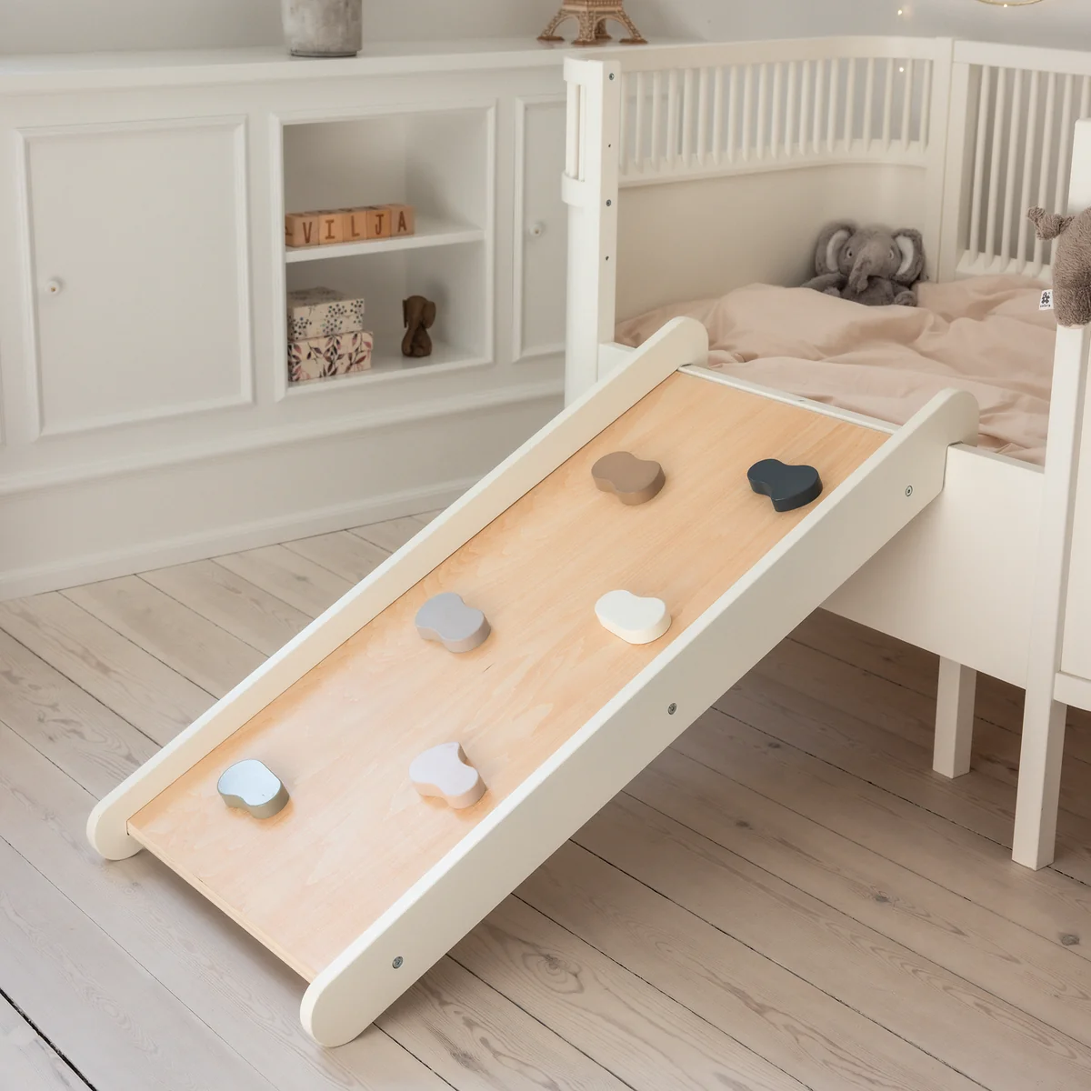Gefertigt aus robusten, hochwertigen Materialien, ist die Kletterwand und Rutsche sicher und langlebig, während das zeitlose skandinavische Design sich harmonisch in jedes Kinderzimmer einfügt. Ein cleveres Zubehör, das Spiel und Schlaf auf charmante Weise verbindet.