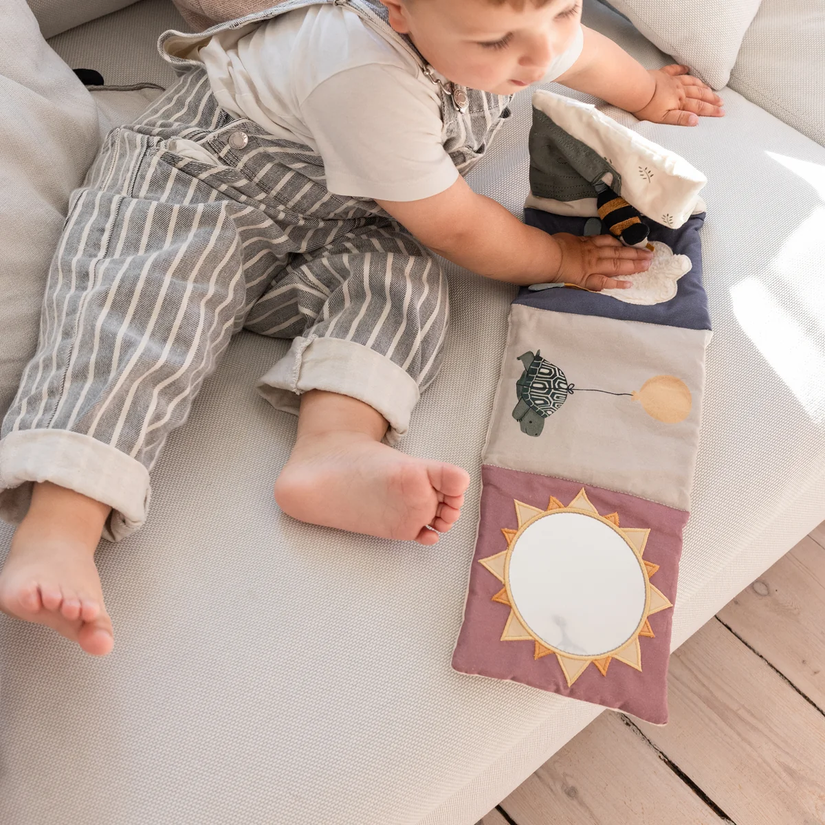 Das Aktivitätsbuch von Sebra präsentiert sich in Form von niedlichen Zeichentrick-Tieren und regt die motorischen Fähigkeiten des Kindes an. Unterschiedliche Materialien bieten abwechslungsreiche Beschaffenheiten, die eine besondere Haptik aufweisen.