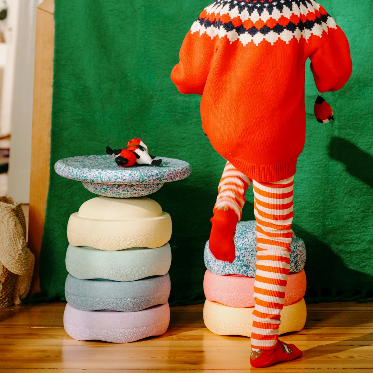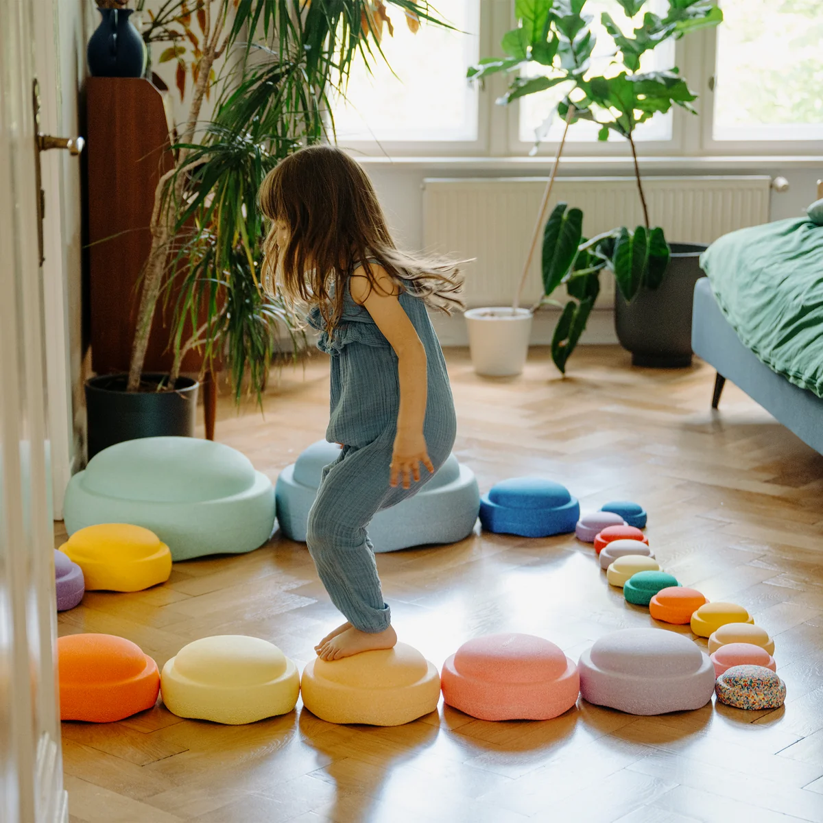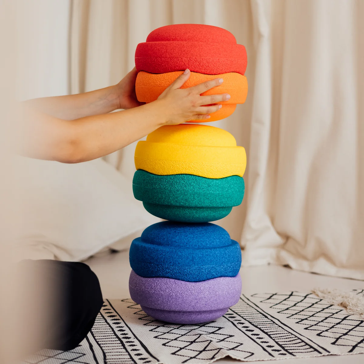 Das Stapelstein® - Original Set begeistert mit seiner Vielfältigkeit! Das tolle Set mit jeweils drei oder sechs Stapelsteinen ist in unterschiedlichen Trend-Farben erhältlich. Jeder Stein kann bis zu 180 kg Belastung standhalten, sodass nicht nur die kleinsten Familienmitglieder, sondern auch Mama, Papa, Oma, Opa und Co. die Balance-Fähigkeiten erweitern können.