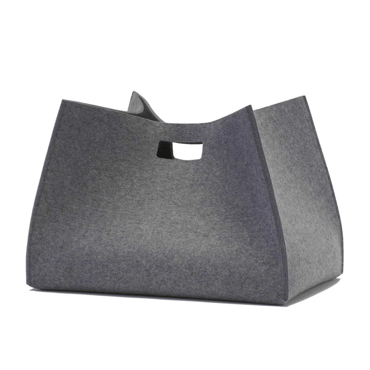 Die Tall Box eignet sich zum Aufbewahren von Spielzeug, Haushaltshelfern und anderen kleinen Utensilien. Auch als Papierkorb kann der wollige Ordnungshelfer dienen. Dank der Henkel lässt sich die Tall Box von Hey Sign mit einer Hand transportieren, wenn ihr Inhalt umziehen soll. Da die Box aus robustem Filz besteht, kann sie sogar als Brennholzkorb dienen.