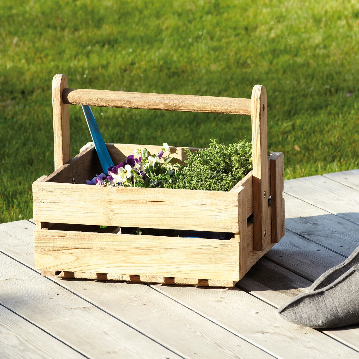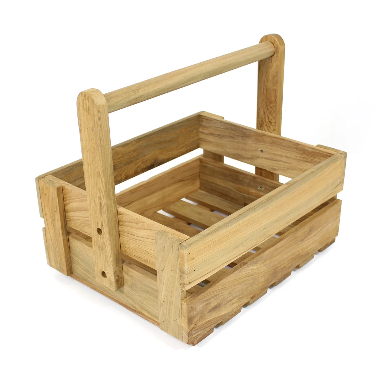 Weinkiste mit Tragegriff aus recyceltem Teakholz