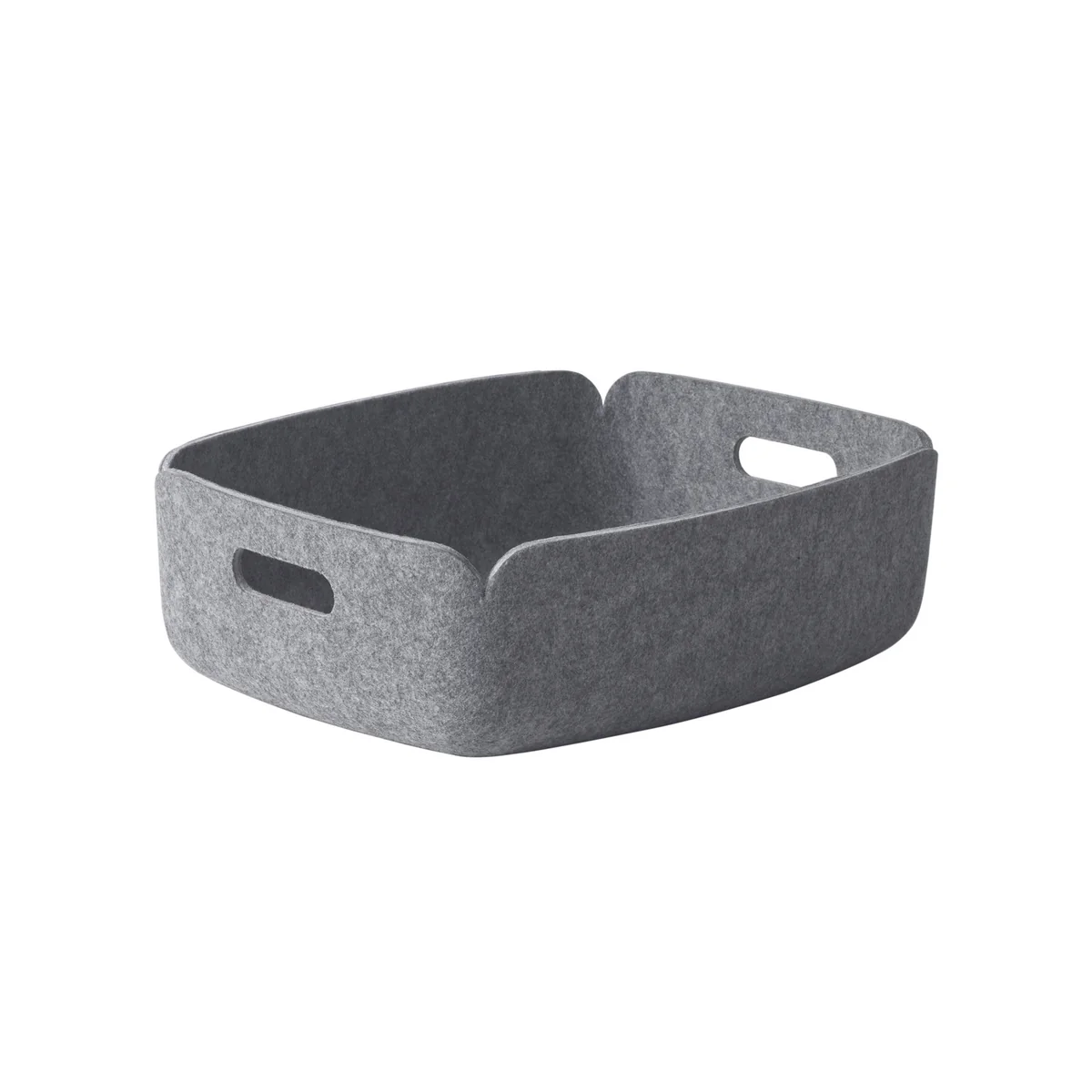 Das Besondere an Restore ist sein unauffälliger Charakter. Der Korb besteht aus PET - Grundlage dafür sind recycelte Plastikflaschen. Diesem Material verlieh der finnische Designer Mika Tolvanen ein natürliches Aussehen, indem er es wie Filz gestaltete. Durch dieses Aussehen der Oberfläche und durch die runden Formen wirkt das Restore Tablett natürlich, freundlich und angenehm unauffällig.