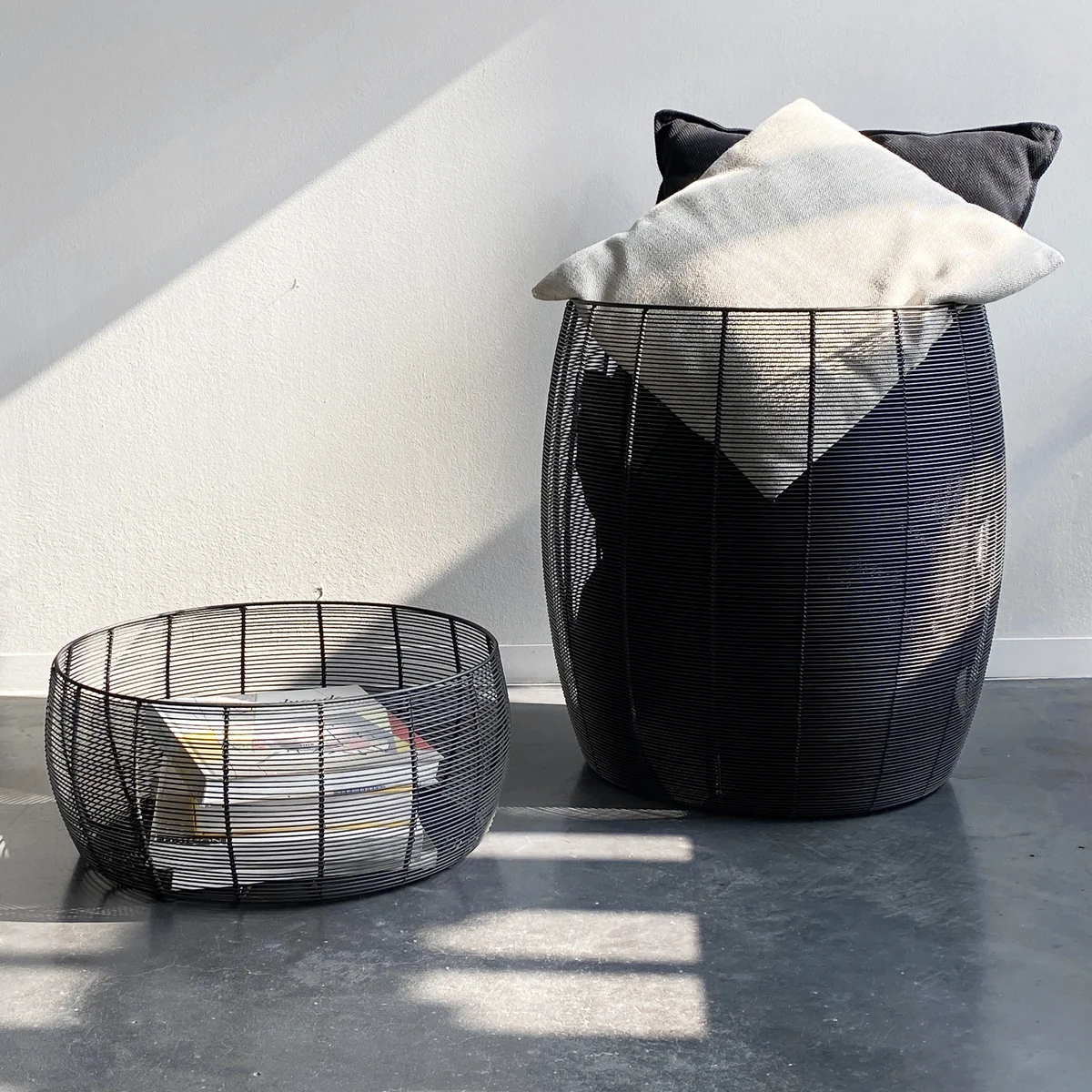 Der Metallkorb ist in zwei verschiedenen Größen erhältlich und besticht durch sein gitterartiges Aussehen aus pulverbeschichtetem Stahl. Als Teil der Dora Serie von XLBoom begeistert der Draht-Korb mit einem filigranem und modernen Look, der sich vielseitig kombinieren lässt.